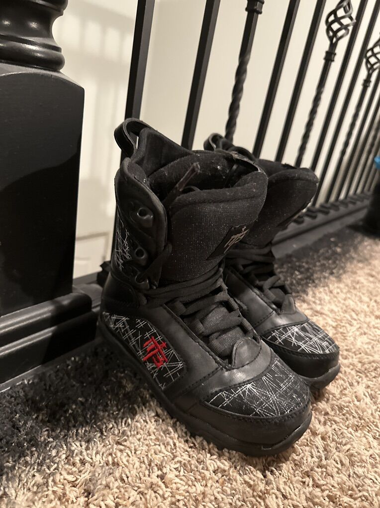 PayPalM3 Militia Kids Snowboard Boot size 22.5 Black boots with white patterns on the side, and geometric design on the bottom. Price: $35 I can take most forms of payment, just let me know your preferred method.