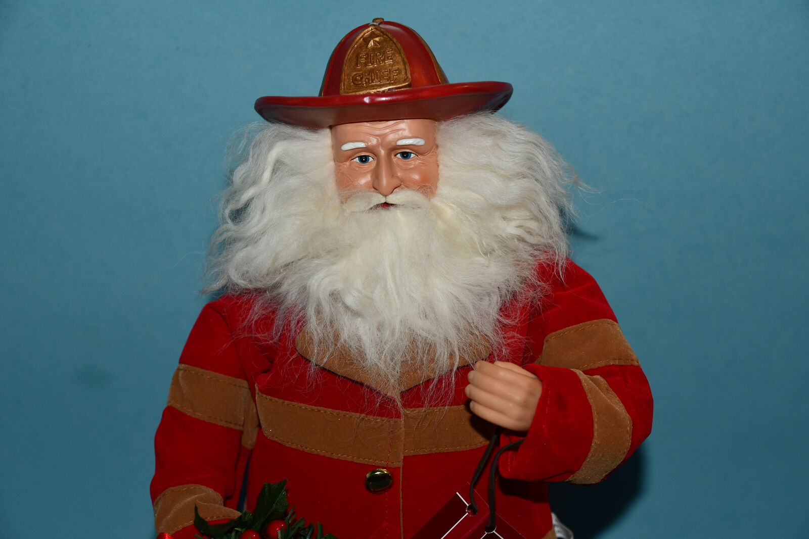 This NWT 18" "FIREMAN SANTA" is from a smoke free home. Questions??? Please ask. We are located in Plain City. Cash only please.