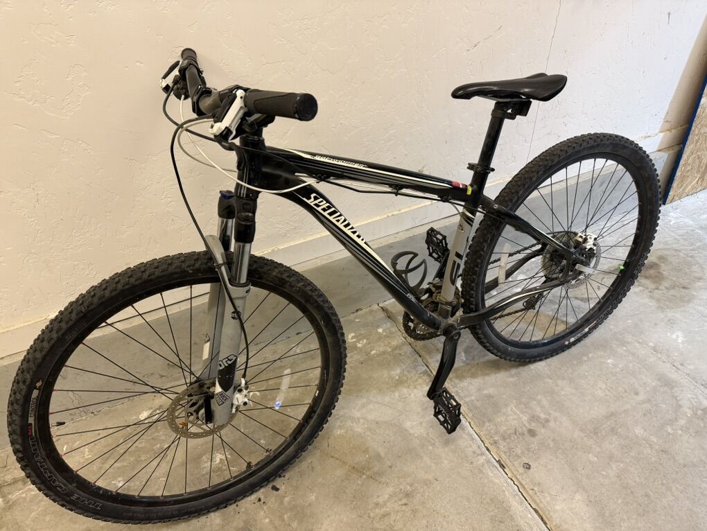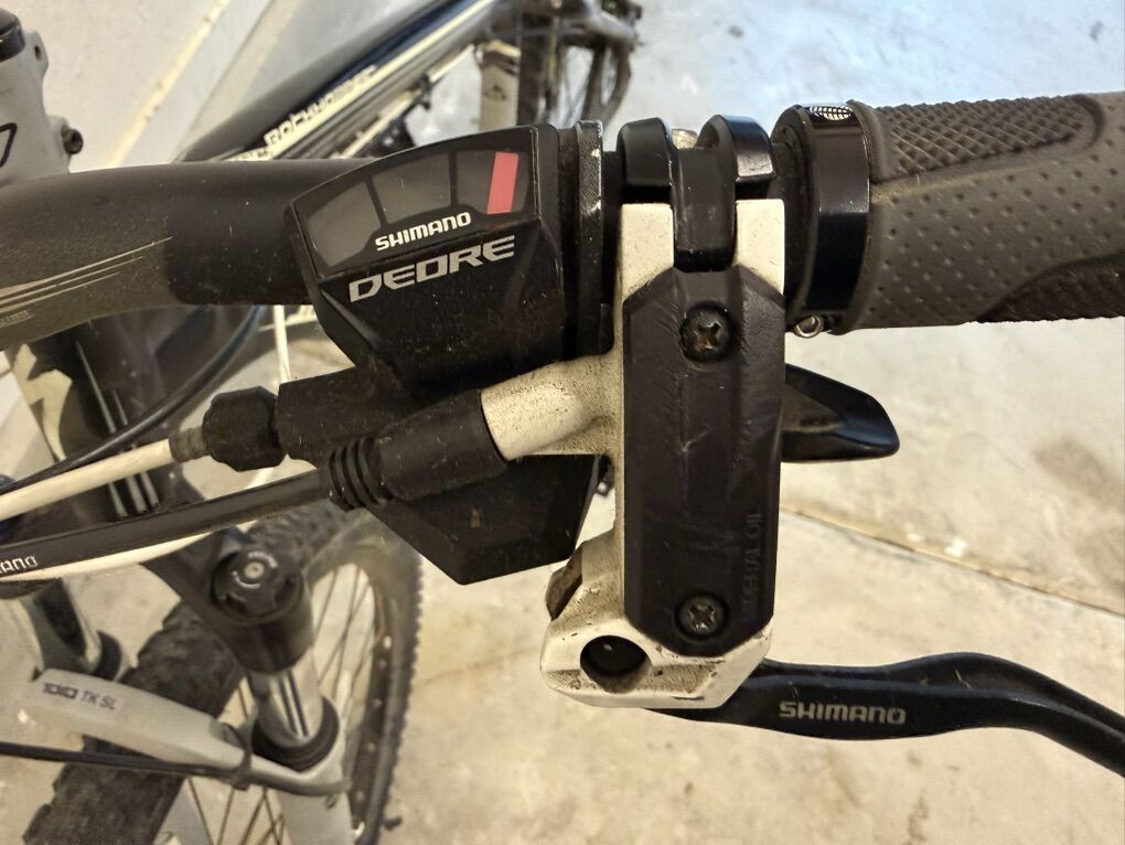 Great mountain bike Disc brakes Front rock shox Shimano deore shifters 29 tires Size 17.5 frame