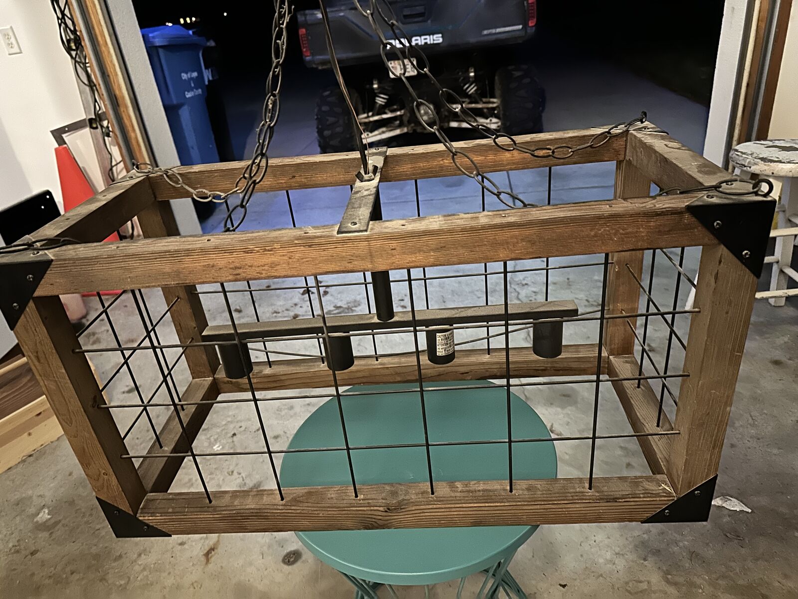 VenmoUnique wood and metal light. Used over kitchen table. Would be great for cabin.