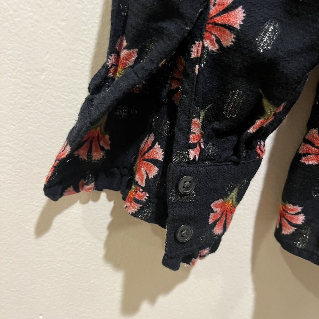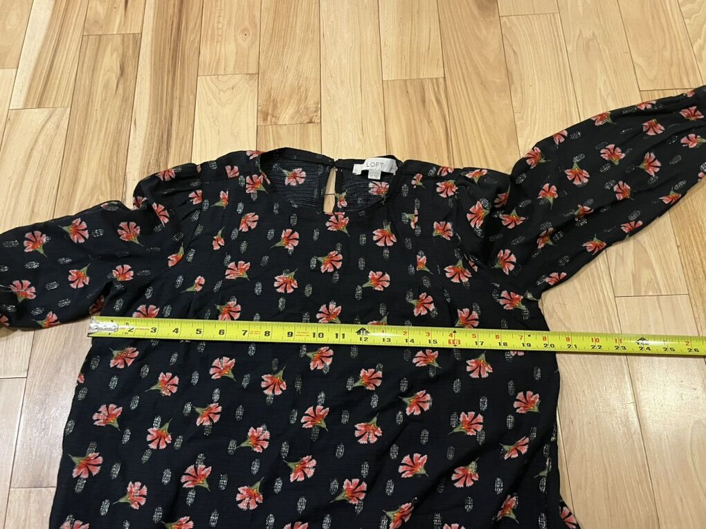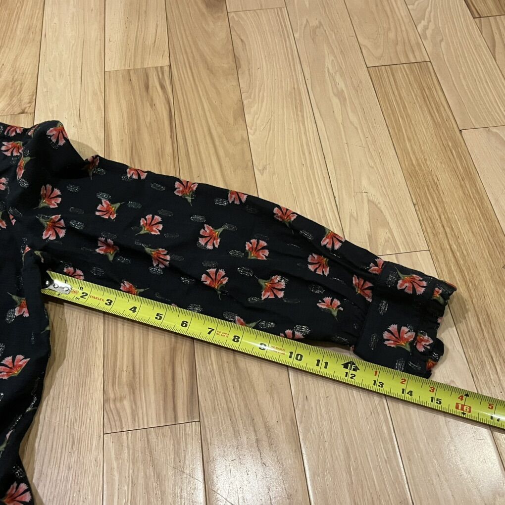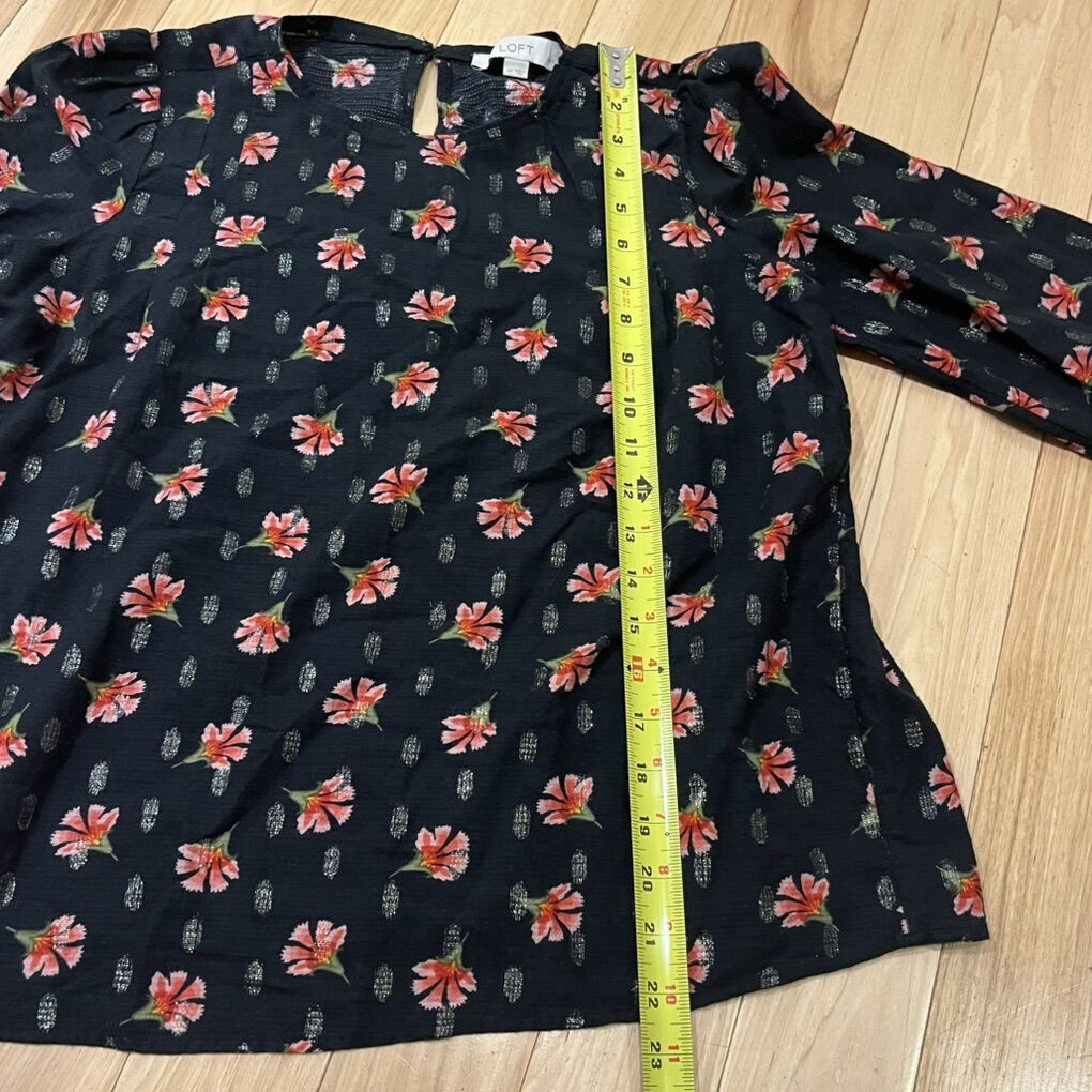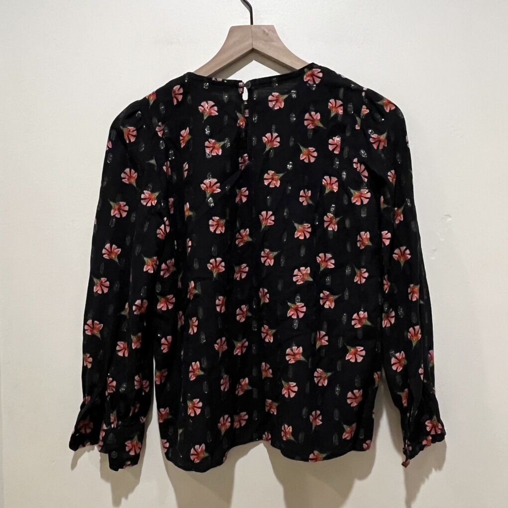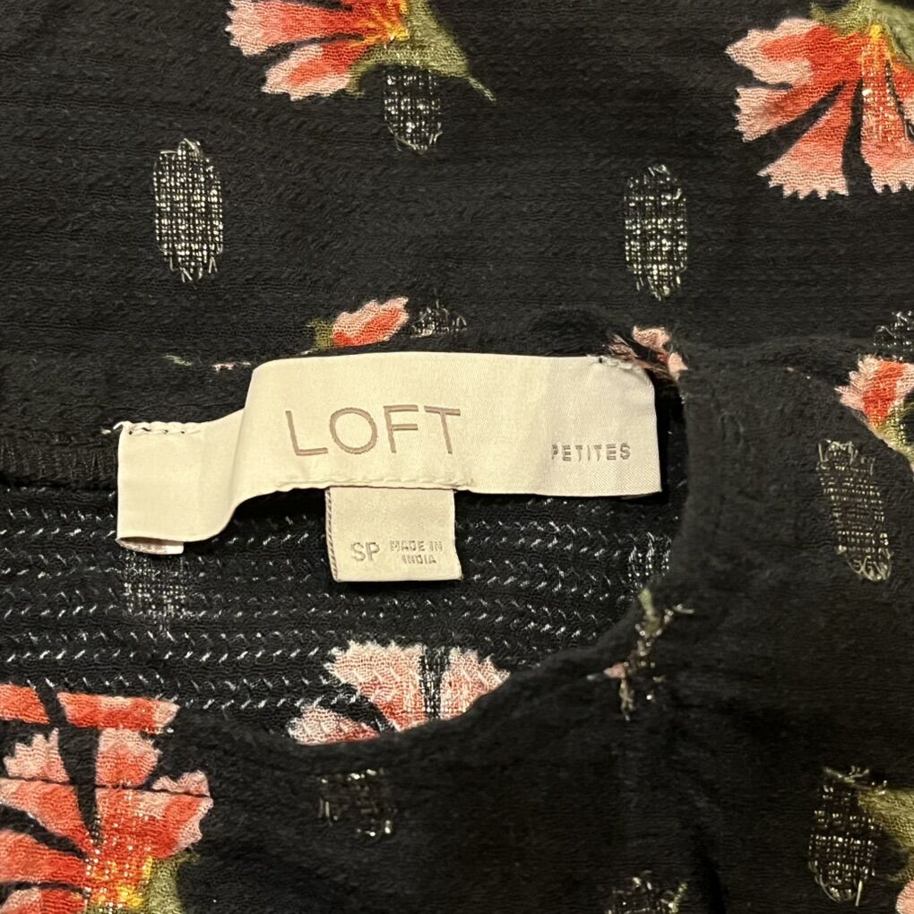 Loft Black and Pink (with some silver shine design) Floral Lightweight Long Sleeved Blouse Top - Women’s Size Small Petite - with puffy sleeves, buttons on sleeves, scoop neck and single back button closure - great condition - pre-owned.