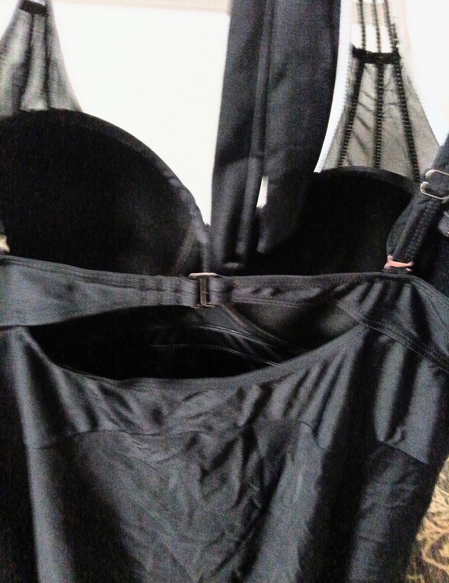 Never wore color black see photos 19" across under breast across adjustable straps ties around neck very sexy !