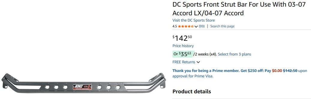 ApplePayDC Sports Front Strut Bar For Use With 03-07 Accord LX/04-07 Accord