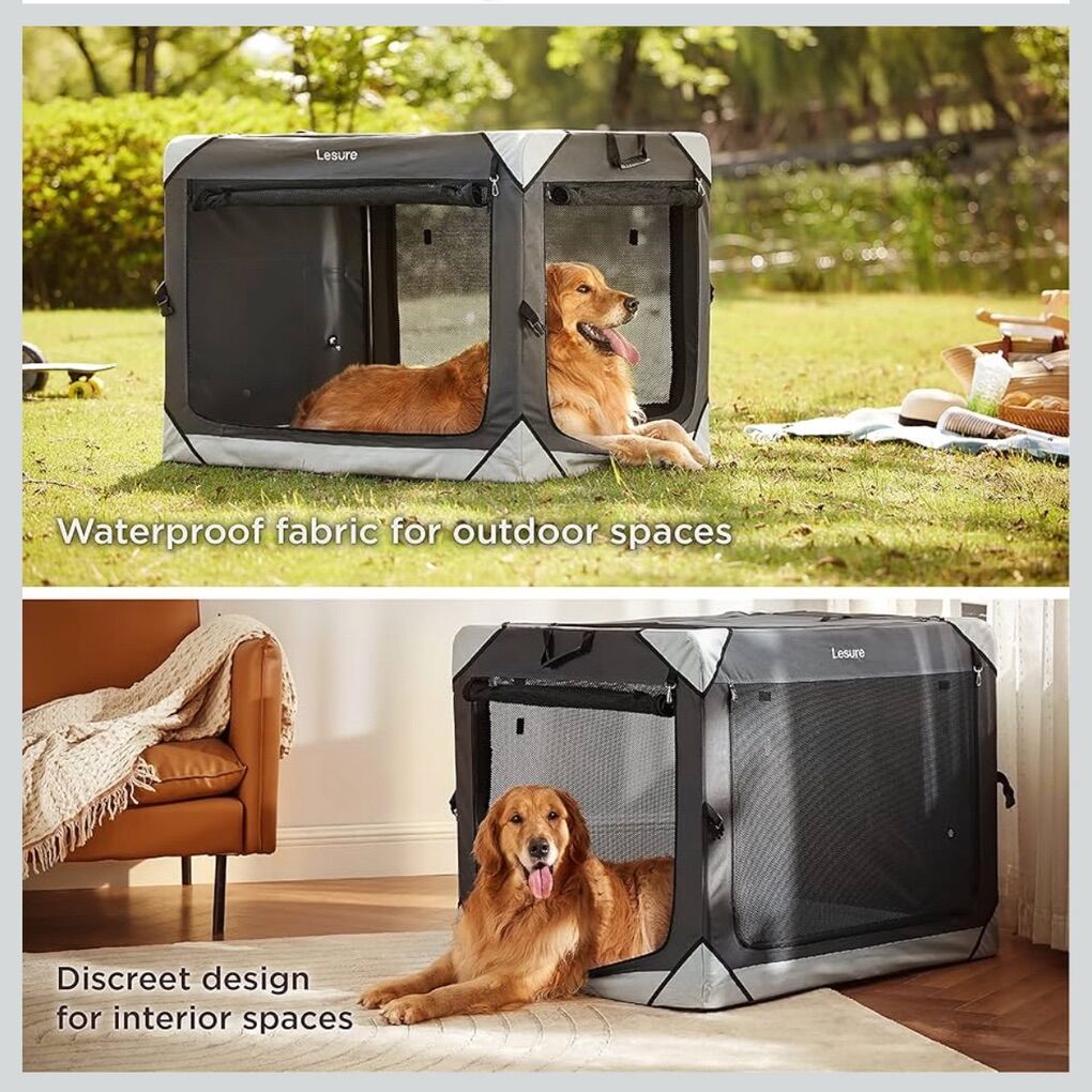 VenmoBreathable Design: Four zippered doors of this escape proof dog crate give your pet multiple ways to enter and exit their new home. Four high-density mesh windows can provide excellent visibility and ventilation. Roll up and secure the mesh panels with velcro for extra air flow and to check on your furry friend.