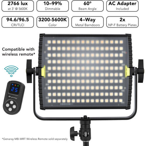 ApplePayOffering color, light intensity, and power options, the all-metal 865BLED Sparta Bicolor LED Light from Angler is an ideal choice for the studio or when shooting on the road. With an illuminated panel area of 8 x 7 x 1.5", the light is compact enough to squeeze into tight spaces, while its low power draw of 36W and almost non-existent generated heat prevents hazard and discomfort to the talent. In addition, the light's 60-degree beam spread offers sufficient coverage with enough punch for long-throw work and can be further modified for selective lighting with the included 4-way barndoors.
