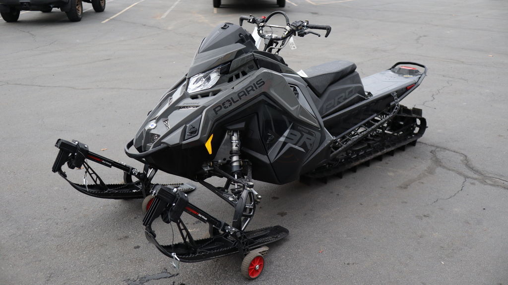 NO FREIGHT OR SETUP 2025 Polaris® 9R PRO RMK 155 Shadow Gray / Gloss Black UNMATCHED PRECISION IN THE TECHNICAL TERRAIN. The PRO RMK delivers balanced and precise performance in the steep and deep. Features may include: THE BEST MOUNTAIN SLED JUST GOT BETTER - AND EVEN LIGHTER The PRO RMK delivers instantaneous lift and lightning fast response. 2025 Boost and 9R PRO RMK models are up to 7 lbs. lighter and have a redesigned throttle system, 1" lower seat, improved running board clean-out, and a lightweight headlight for improved connection and control to deliver the best RMK experience yet. Rider First Design. Effortless Control. The Matryx RMK platform includes a narrow seat, tank and console that provide improved rider connection to the sled while the narrow bodywork enables more agility and less drag in the snow. The new seat design and running boards further improves rider mobility on the sled while the new throttle system helps you feel connected to the sled on every ride. Maximum Lift. Maximum Precision. The PRO RMK Rear Suspension features a balanced, optimized geometry and rail design to deliver power directly to the snow to pop up and drive forward. Rigid design allows for precision to hold lines in the most technical terrain. Available in 155 and 165 lengths. Choose Your Power. With three engine choices from the Patriot Family. Choose the legendary durability and relentless acceleration of the Patriot 850, or the Factory Mods… the ultra-responsive Patriot 9R or turbocharged Patriot Boost. ULTIMATE CONTROL IN THE STEEP & DEEP When we build a sled, we build it to be the best sled for each unique riding style, not simply a different sticker or name. Every part is scrutinized to deliver what you need as a rider. For 2025, we've made refinements to deliver an even better riding experience in the backcountry. Ultimate Control The RMK Matryx Slash platform features a next-level rider interface and slashed, tapered tunnel. Combined they deliver minimized drag and maximum control Lightning-Fast Response. Puts The Power Down. QuickDrive is the lightest drive system in the industry and produces the lowest inertia for optimum response. Choose between the 325 Series 9 Track for instant traction and forward drive in deep snow or the 275 Series 8 track for versatility and traction in varying snow conditions. Precise Steering. Confidence Inspiring. The RMK React Suspension lets riders effortlessly initiate sidehills and experience less fatigue with the most predictable ride. It includes a 36"-38" stance, a sway bar designed for predictable handling, and forged a-arms and spindles optimized for strength and durability. Lightweight And Precise. Choose from two shock options. Ultra-premium Walker Evans Velocity Shocks are the best of the best in various mountain conditions. They feature remote reservoirs for increased oil capacity to ensure all-day performance and durability, along with compression adjusters to dial in the ride. The Walker Evans Lightweight Monotube Shocks are standard and feature a simple and durable one-piece design. INDUSTRY-LEADING TECHNOLOGY Polaris sleds lead the way in technology that enhances your ride. Technology built to help you plan rides, track your group, keep your sled cool in tough conditions, and see your way from dusk til dawn. Built To Stay Cool And Light. The shortened centralized cooling system on the RMK Matryx Slash platform features reduced dry weight and delivers improved cooling capability while reducing snow and ice build up. Reversible scratchers will help to keep your Patriot power running within spec.
