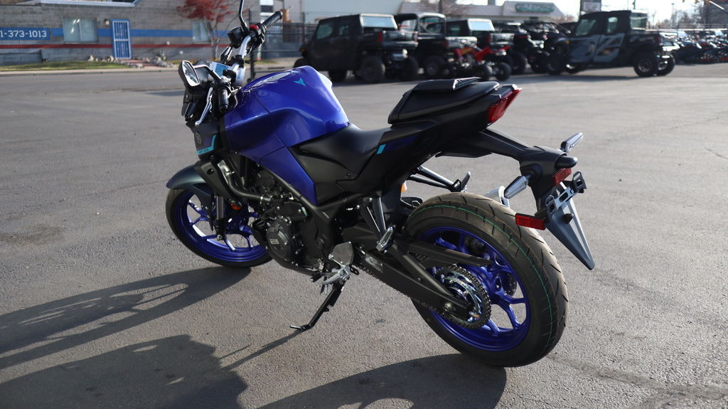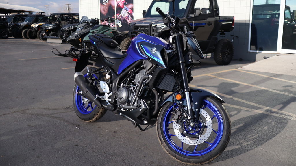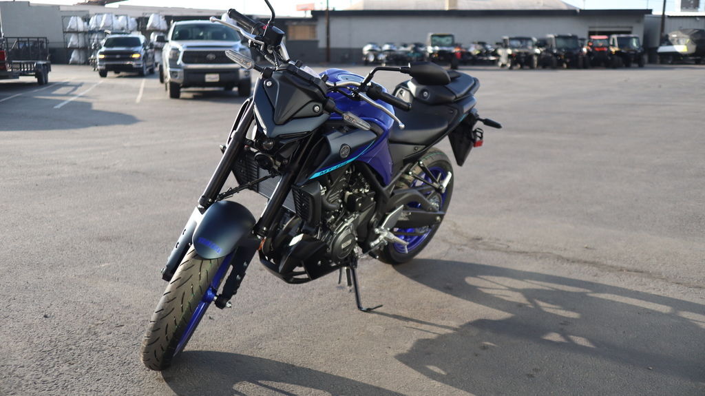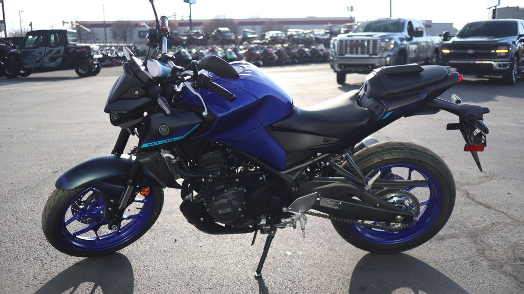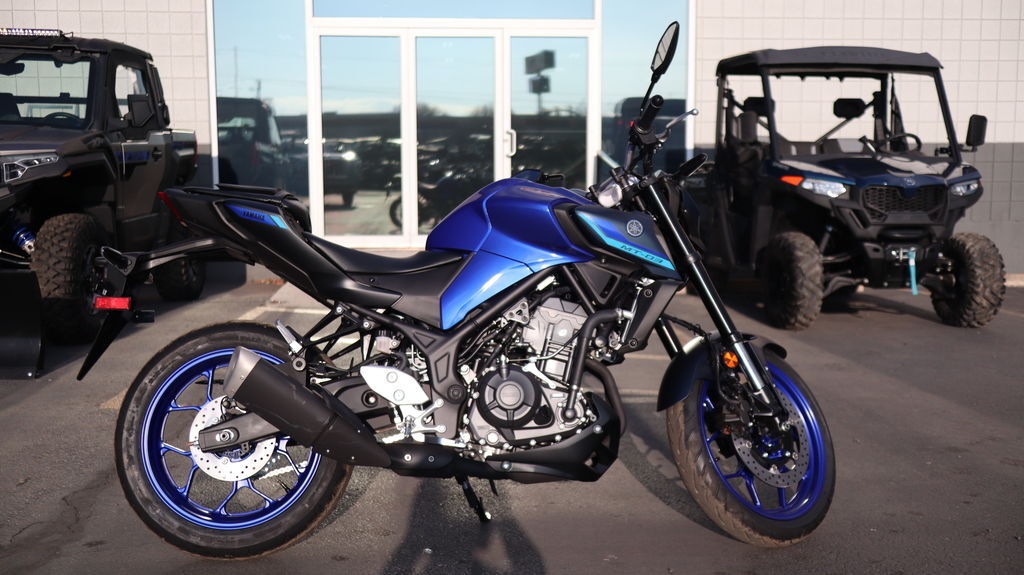 2025 Yamaha MT-03 THE DARK BECKONS Your entry to the Dark Side. Built to thrill with a twin-cylinder engine, aggressive looks and serious street presence. Features may include: Updated Styling Updated styling for the new 2025 MT-03 includes an all-new tail section with a new taillight design, along with subtle refinements to the front-end exterior design bringing a more unified look with its MT-series siblings. Smartphone Connectivity The 2025 MT-03 now features Yamaha Motorcycle Connect (Y-Connect) smartphone connectivity which works in conjunction with the free-of-charge Y-Connect app (available for iOS and Android) to enable a direct connection between motorcycle and smartphone. Y-Connect capability for the MT-03 includes the ability to view incoming call, email and message notifications. Additional useful functions include monitoring and notifying the rider or other contact of motorcycle technical issues, and also the ability to track and record key motorcycle ride data within the app, including distance covered, fuel consumption, acceleration, motorcycle location and much more. New LCD Display An all-new LCD instrument cluster now displays connected smartphone information along with vital vehicle data. There is also a new USB-A socket located next to the display providing convenient power for phone charging or heated gear. New Assist & Slipper Clutch A new Assist & Slipper (A&S) clutch utilizes an assist cam and slipper cam to help inhibit excessive engine braking for a smooth, easy-to-handle feeling during downshifts while also reducing the amount of force required to pull the clutch lever for less hand fatigue. The shape of the clutch lever has also been optimized for enhanced feel. Improved Ergonomics A slimmer seat and side covers improve the rider's foot reach to the ground while retaining the MT-03's comfortable riding position. Additionally, a new passenger seat design is wider and the cushioning is thicker for greater passenger comfort.