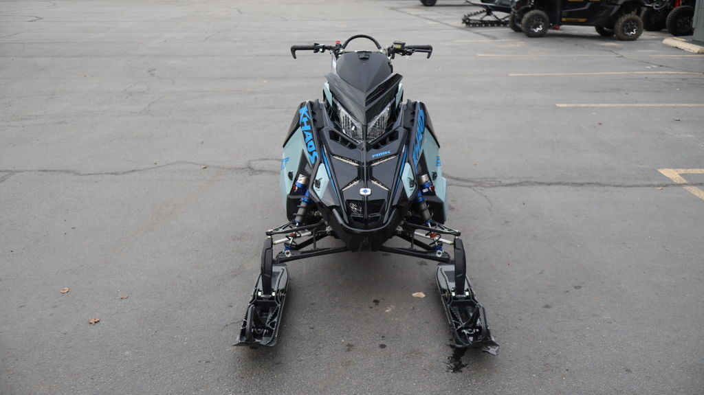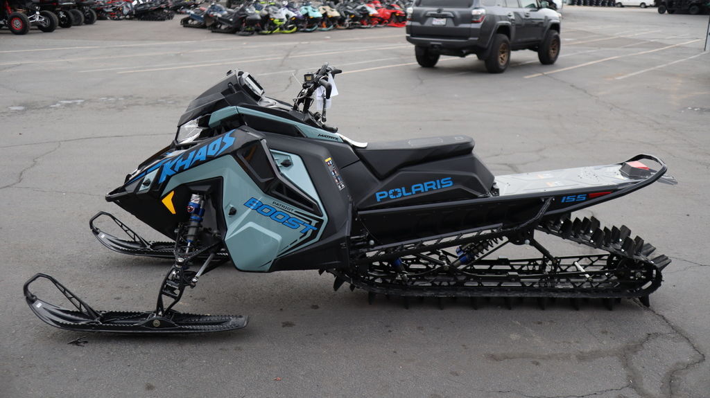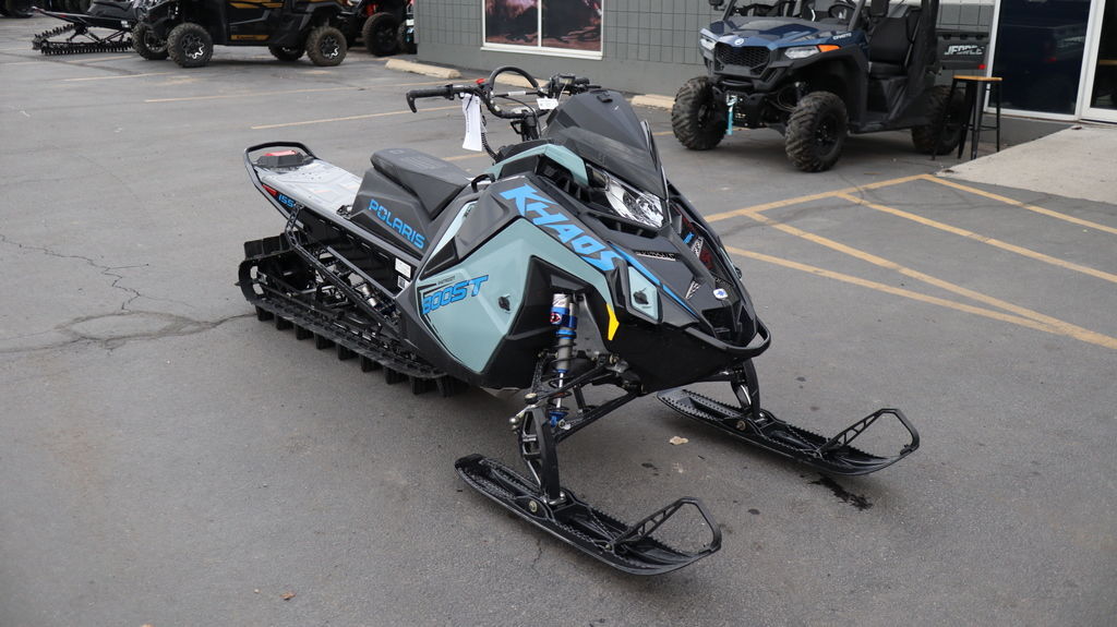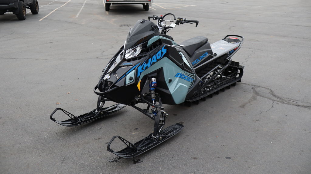 2026 Polaris® 850 RMK Khaos 155 Hemlock Blue / Black / Velocity Blue The Ultimate in Dynamic and Agile All-Mountain Performance The RMK Khaos delivers transfer and traction for a wild and playful ride in the backcountry. RMK Khaos models are lighter than the competition for easier maneuverability and better flotation in deep snow conditions. Features may include: Quicker Response. Higher Track Speeds. QuickDrive is the lightest drive system in the industry and produces the lowest inertia for optimum response. Choose between the 325 Series 9 Track for instant traction and forward drive in deep snow or the 275 Series 8 track for versatility and traction in varying snow conditions. Float And Fly The RMK Khaos Rear Suspension features geometry that provides transfer and traction for light, playful handling, along with the best response and control in all riding zones. Available in 146, 155 and 165 lengths. Big Time Shocks for Big Time Terrain Ultra-premium Walker Evans Hi-Lo Shocks are the best of the best in extreme mountain conditions. They feature remote reservoirs for increased oil capacity to ensure all-day performance and durability, along with high and low-speed compression adjustment to dial in the ride.