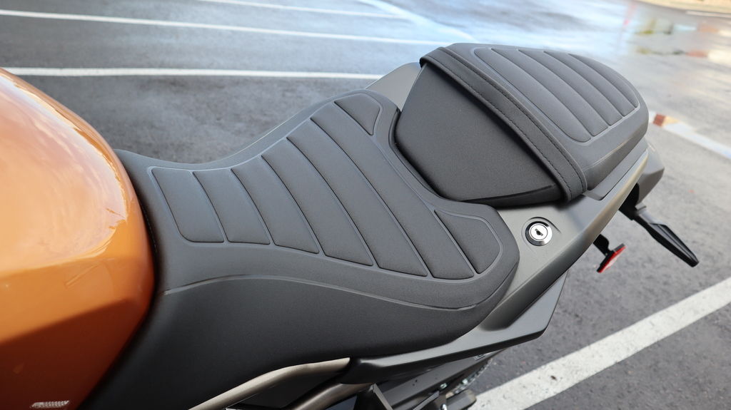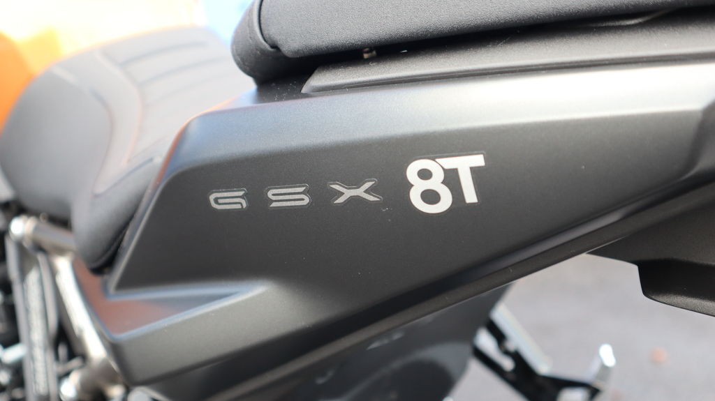 The GSX-8T introduces handlebar-end mirrors that deliver a classic look while improving rearward visibility and reducing interference with the rider’s body. A premium tuck-and-roll seat design combines refined texture with carefully sculpted foam for long-distance comfort, strong overall support, and a confident knee grip.