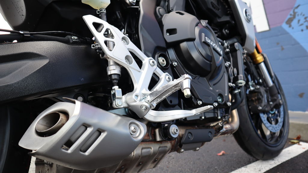 Suzuki Drive Mode Selector (S-DMS) offers three engine power delivery modes for quick changes in feel and response. The four-mode Suzuki Traction Control System lets riders tailor rear-wheel spin sensitivity for varied road conditions, with three active levels plus OFF for a more direct experience when desired.