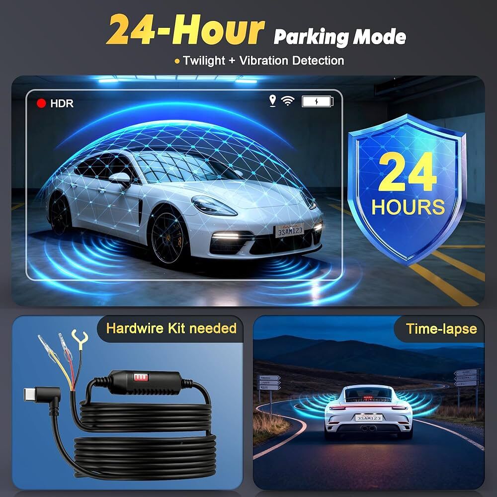 VenmoBrand new, 4K+2K+2K 3 Channel Dash Cam Front and Rear, 128GB Card Included, Dash Camera for Cars 5.8G/2.4G Dual Wifi, Built-in GPS, Night Vision, WDR, 170°Wide Angle, G-Sensor Emergency Lock, 24H Parking Monitor