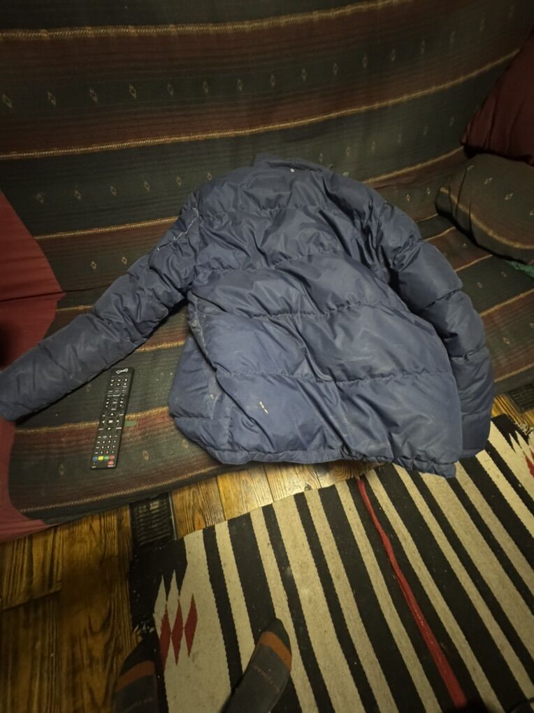 This is a really warm large down coat that I’ve had for numerous years. It was great for ice fishing or any really cold day. Located in Evanston Wyoming and I travel down to Utah about once a week. This is a nicer heavier more durable nylon shell than today’s coats. It does not show what size it is but I think it is a large.