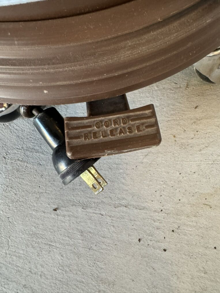 One owner has auto cord rewind. Works great but needs hose ends. Comes with attachments and original manual.