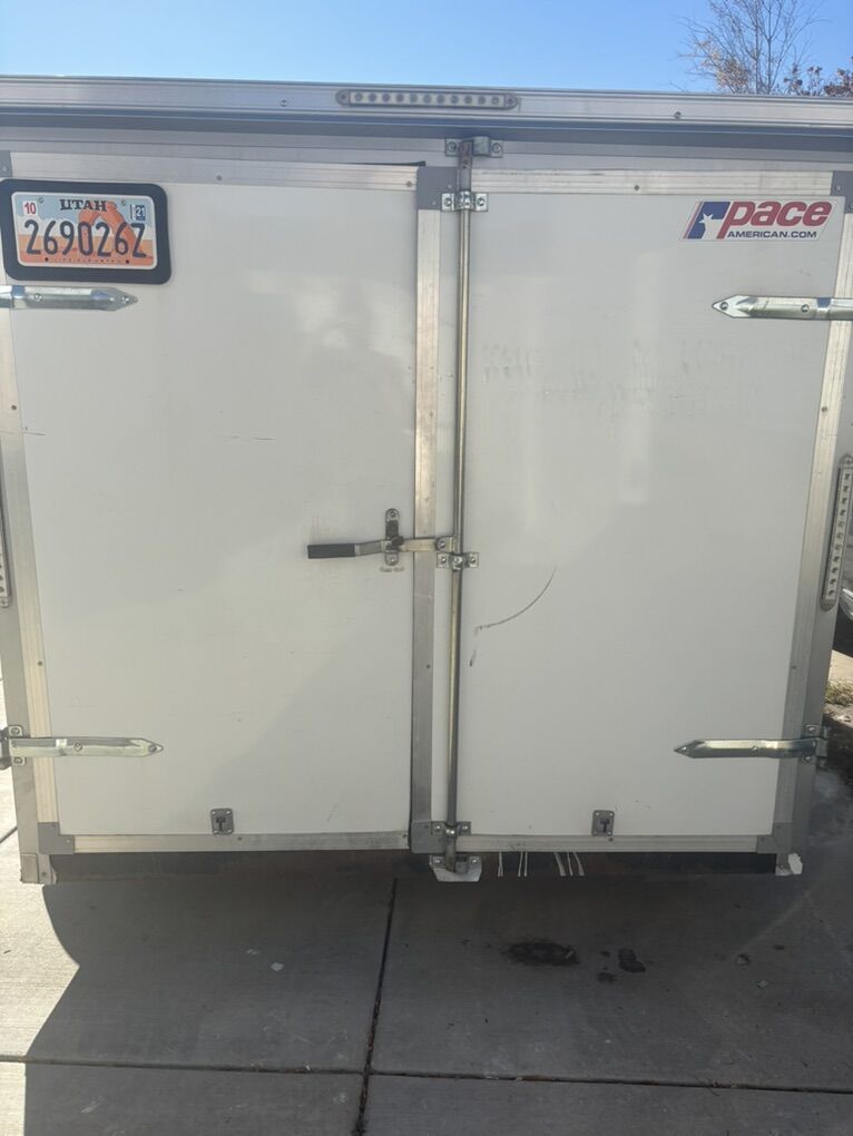 Used enclosed trailer. Overall good used condition, doors latch well and interior is good. The exterior has a few bumps and scratches. Tires in great shape. Double doors rather than ramp on the back makes it easier to access in tight spaces. Double axle. Title in hand. Cash, cashiers check, or bank check only. No online payments or personal checks.