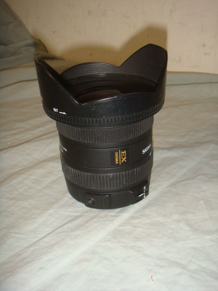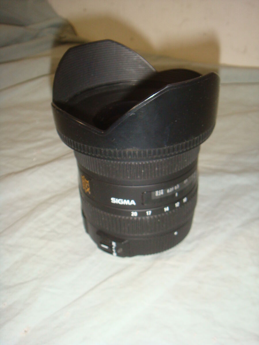 SIGMA 10-20mm F/4-5.6 EX DC HSM WIDE ANGLE ZOOM LENS WITH HOOD FOR NIKON. This is in used, but great overall condition. It has been tested and works perfectly! It is the lens with lens hood. No lens caps, but it will be packaged and protected! It comes with everything shown. This is your chance to save big-time so don't miss out!!