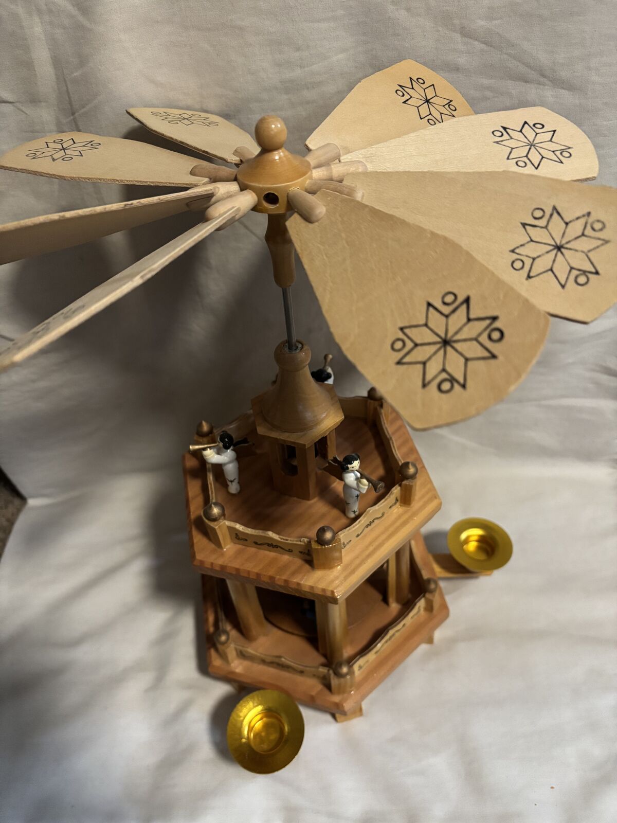 The pyramid is 12" with a 10" fan. One of blade is missing the connector. One blade is a replacement also with no connector. Replacement fan blades cane be found but I have not found a replacement that I like. So will let the next person decide. Everything else is complete.