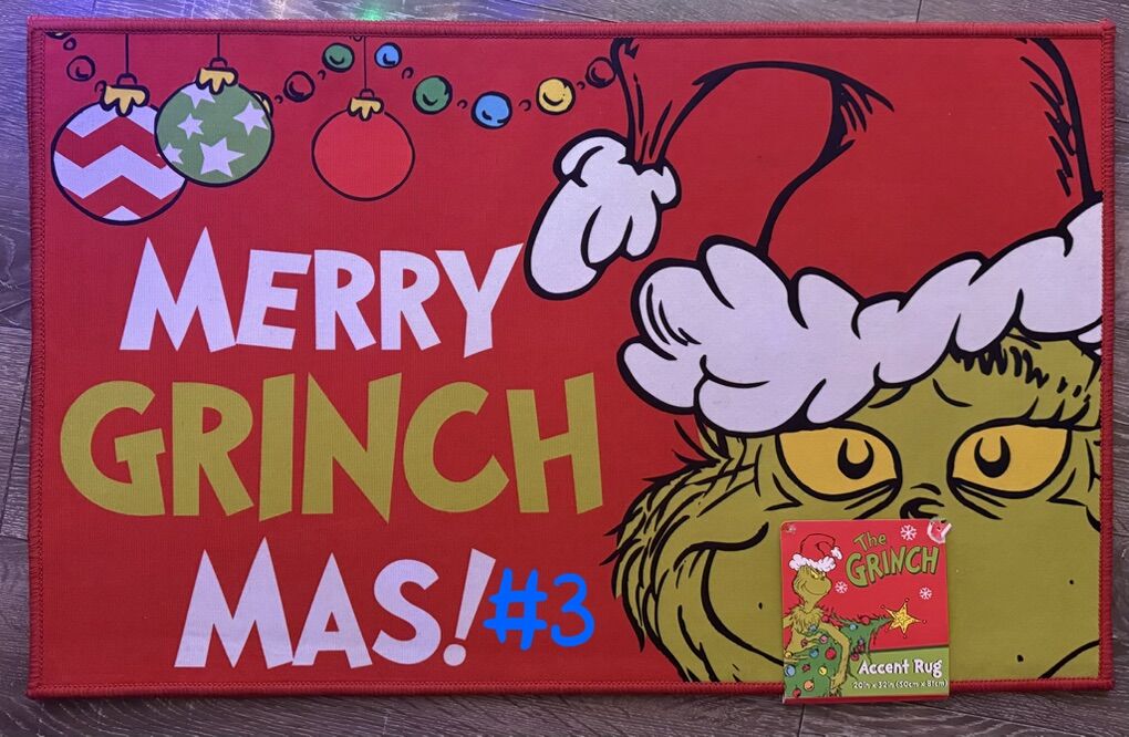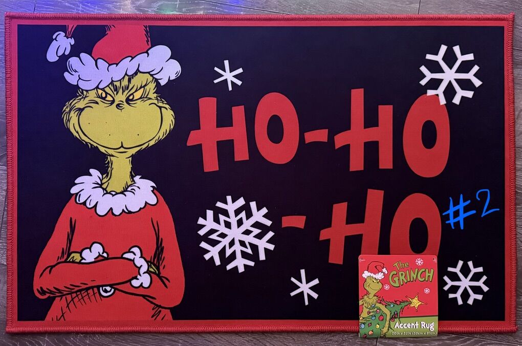 SIZE 20in x 32in (50cm x 81cm) THE GRINCH CHRISTMAS RUGS $25 EACH. I HAVE 4 LEFT, LET ME WHAT RUG YOU WOULD LIKE BY THE NUMBER. ONCE SOLD OUT I WILL TAKE DOWN THE POST.