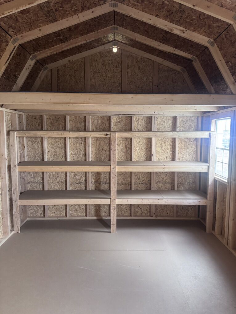PayPalBrand new 12x16 Premier Side Lofted Barn in stock and ready for backyard storage! Featuring: Dual 4’ lofts 3-tier shelving 70” barn doors 2x3 windows 2x6 pressure treated floor joists