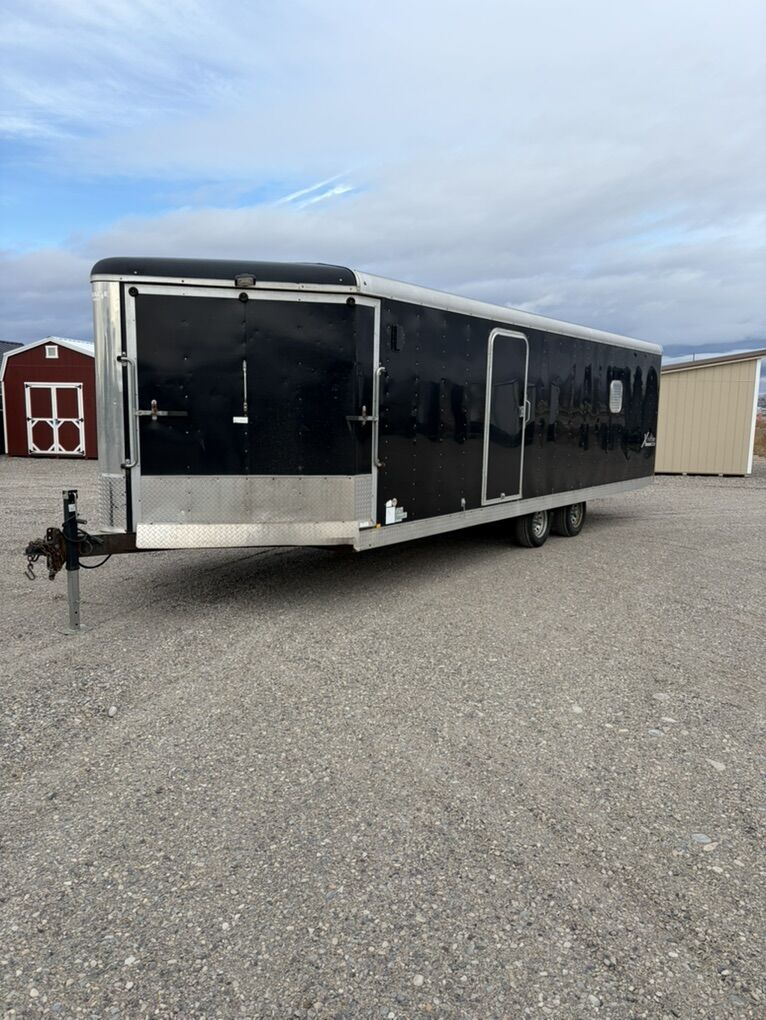 Well taken care of Mirage enclosed snowmobile trailer. Ready to go. 24’ box and 4’ nose. Tires in good shape. Spare needs replaced. No major rust. No leaks. Clean title. Call or text Kade at 2082210041. Thanks.