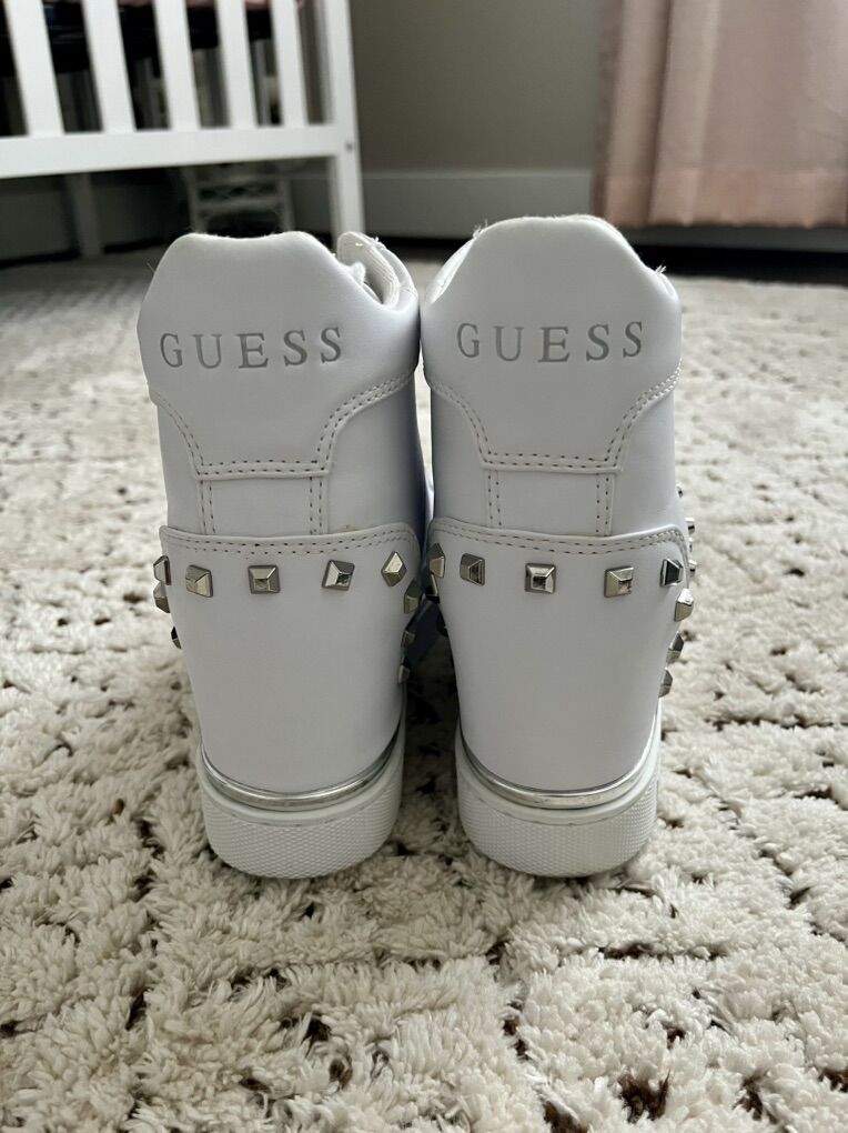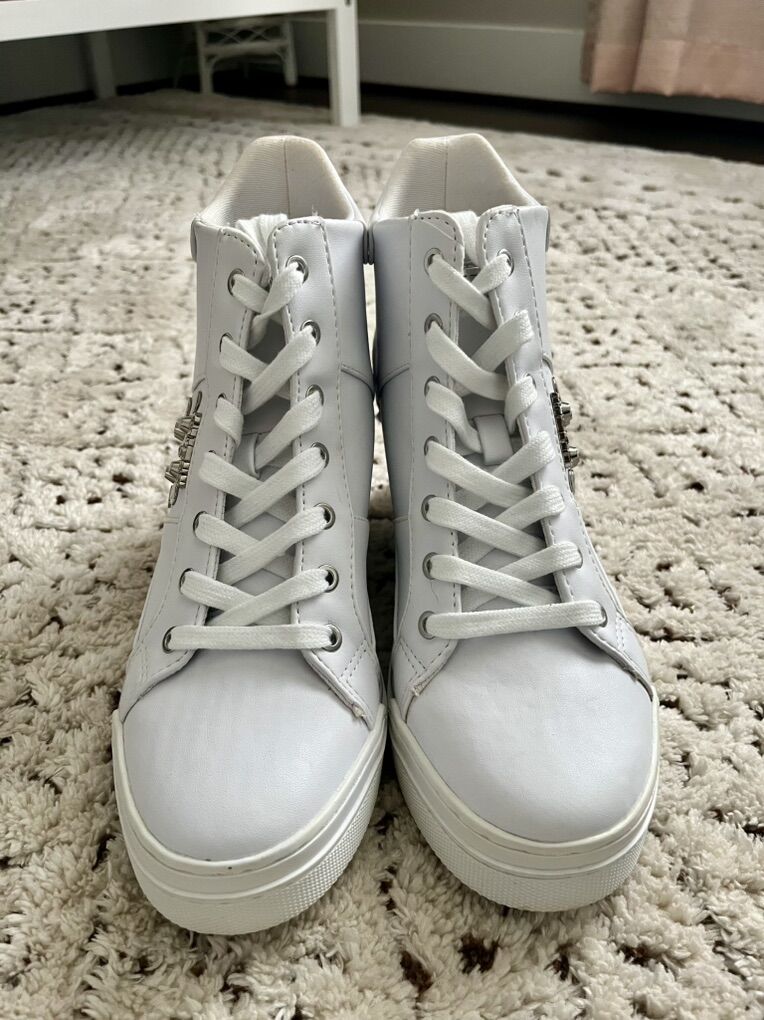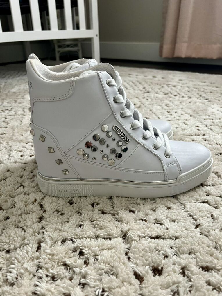 VenmoSelling these Guess brand high-top wedge sneakers. Women’s size 8. Only worn a handful of times, like-new. Excellent condition. Asking $30.