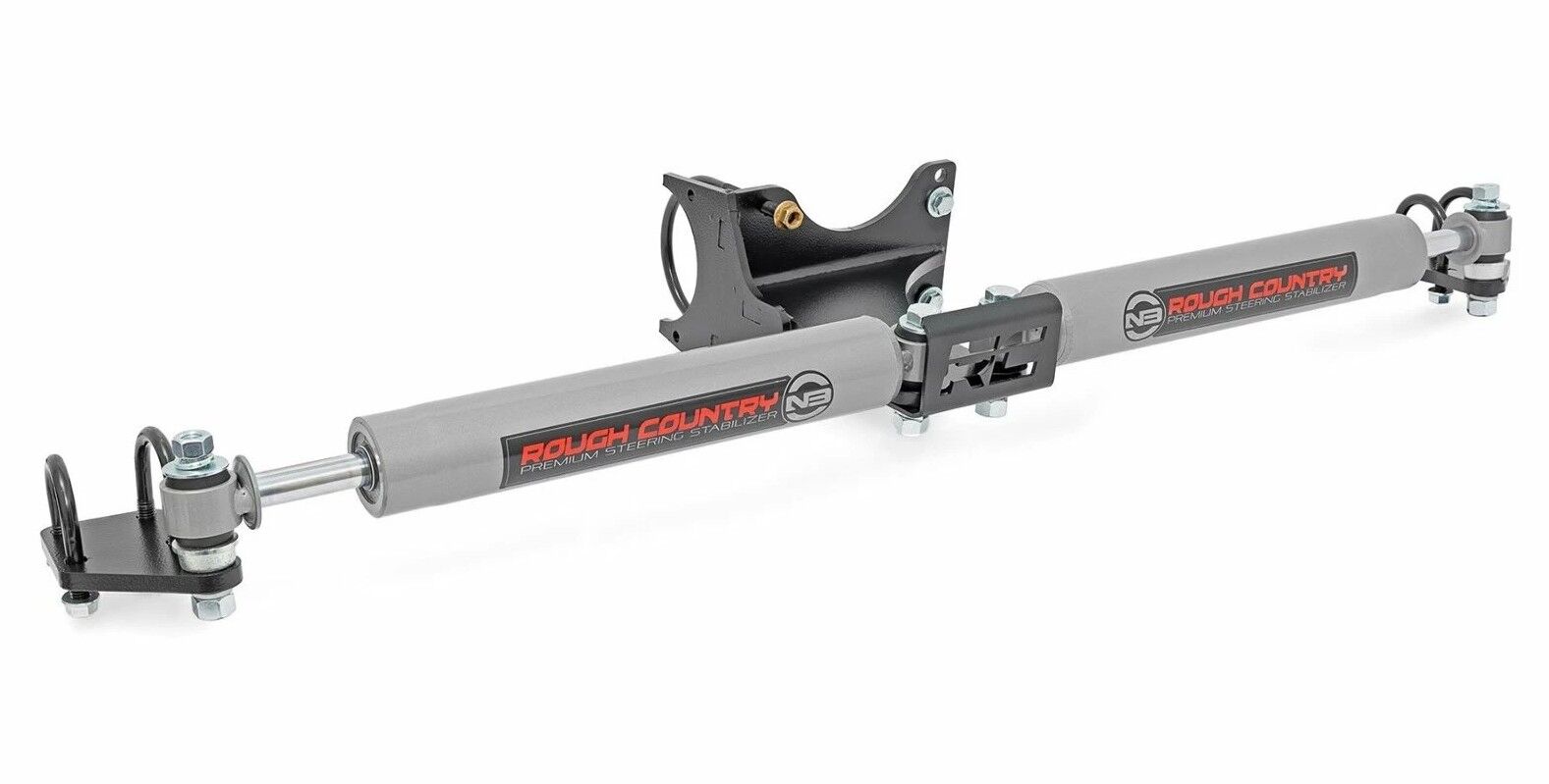 Rough Country's Dual N3 Steering Stabilizer comes in to design and restrain bump steer and front end vibration which adds life to your tires, ball joints, and other steering components. This performance dual steering stabilizer kit is a high-quality and affordable solution to the infamous "death wobble" problem so often plaguing lifted Super Duty owners. With the dual steering stabilizer kit you can gain an efficient drive while towing or hauling trailers and equipment. This dual steering stabilizer absorbs shock to give you the capability to improve your vehicle's drive performance.