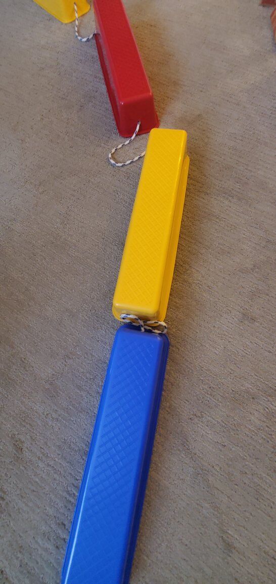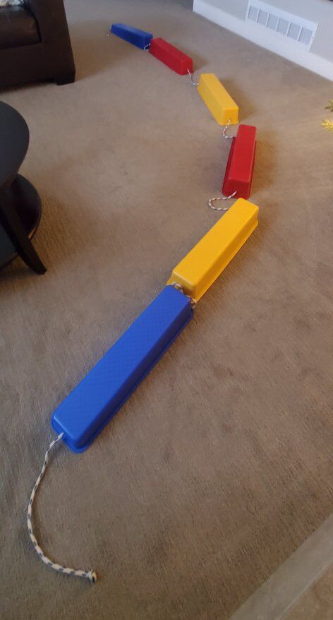 PayPalStackable balance beam, great for kids, obstacles courses, occupational therapy, or basic gymnastics. Each is connected by rope and are stackable to save space. In good condition.