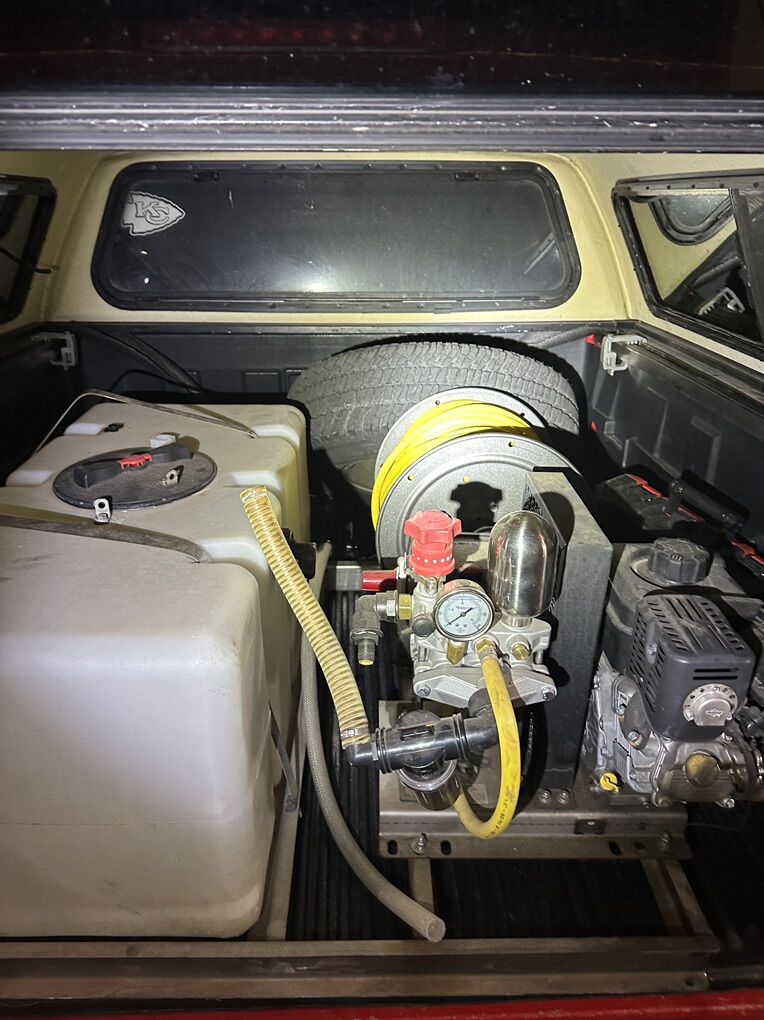 ApplePayLow profile skid sprayer. Engine, hose reel, pump, and tank in good shape. Retails between 3000-3500. Asking 2000