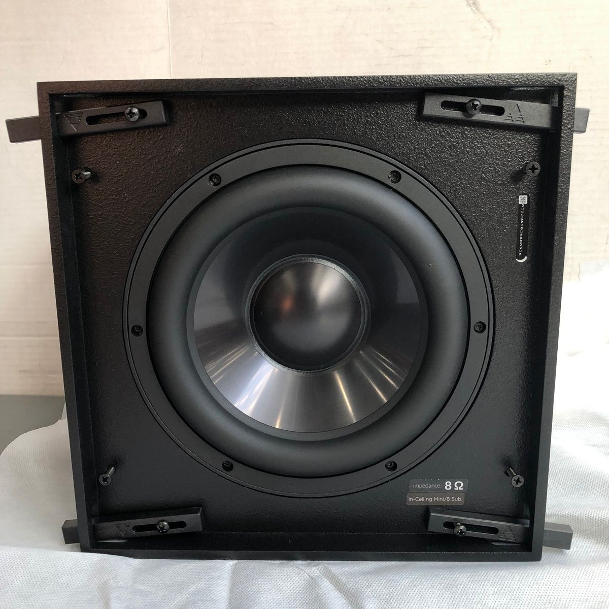 TRIAD MINI/8 SUB STANDALONE IN-CEILING 8" 8-OHM SUBWOOFER IN BLACK FINISH 51615-4080-3. This is a brand new, open box subwoofer that has never been used and was only opened for the photos. There is one tiny tiny surface mark on the back of the enclosure from when it was removed that we'll show in the photos, but it's super insignificant and otherwise brand new in perfect condition. It works perfectly. It comes with everything shown. These are normally $2500. This is your chance to save big-time so don't miss out!!