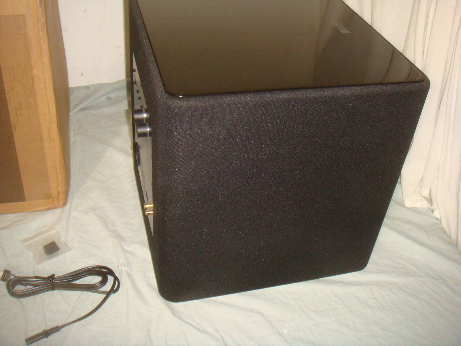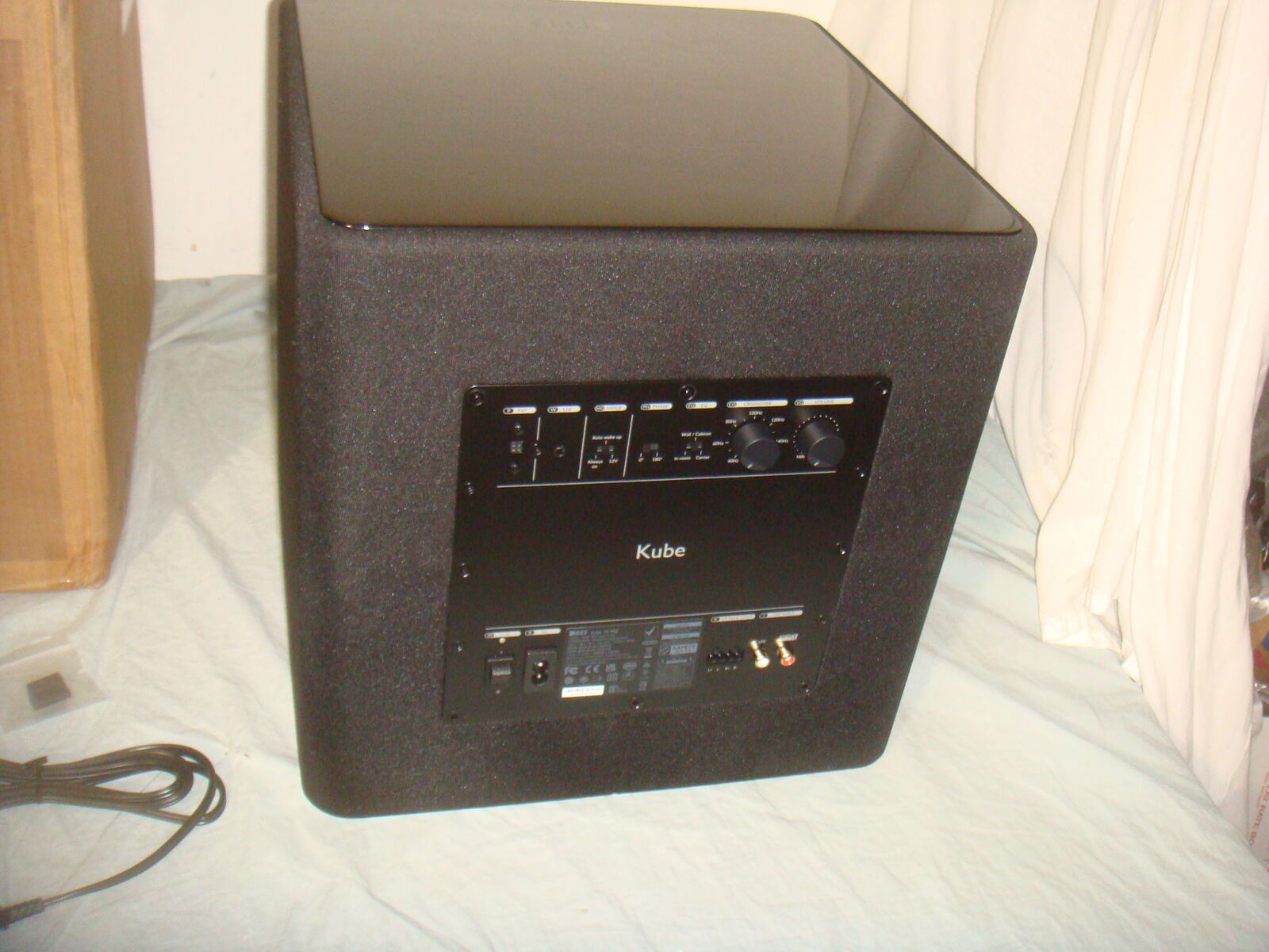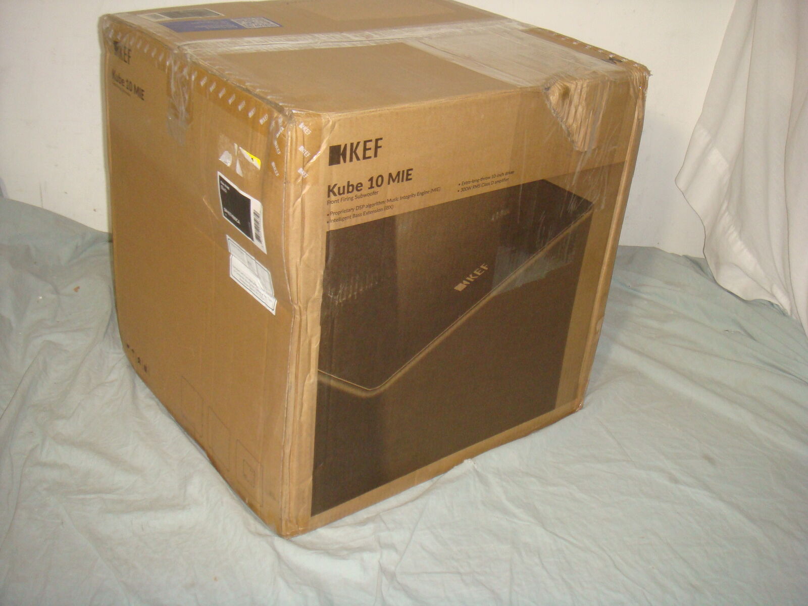 BRAND NEW, OPEN BOX KEF KUBE 10 MIE 10" 300 WATT POWERED SUBWOOFER. This is new, never used, only opened for the photos. The original box is slightly distressed, but the subwoofer and all contents are unharmed and in new, perfect conditon! It comes with everything shown. These are normally $899. This is your chance to save big-time so don't miss out!!