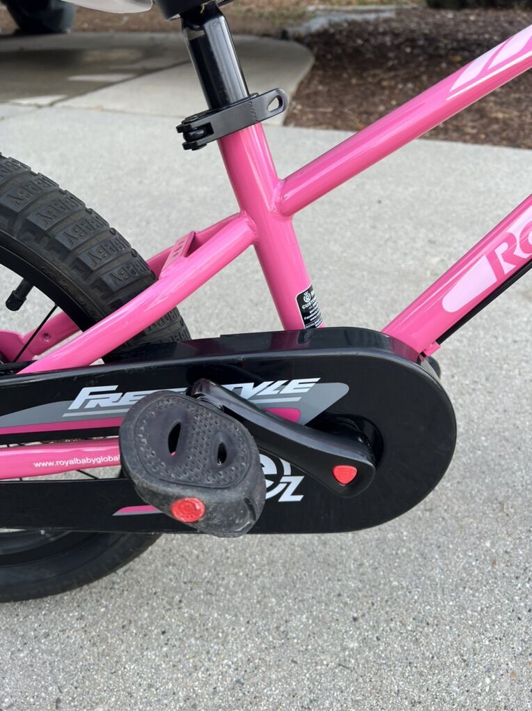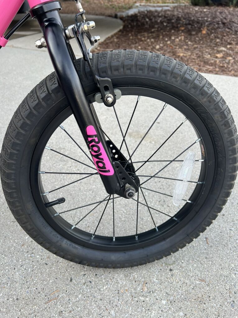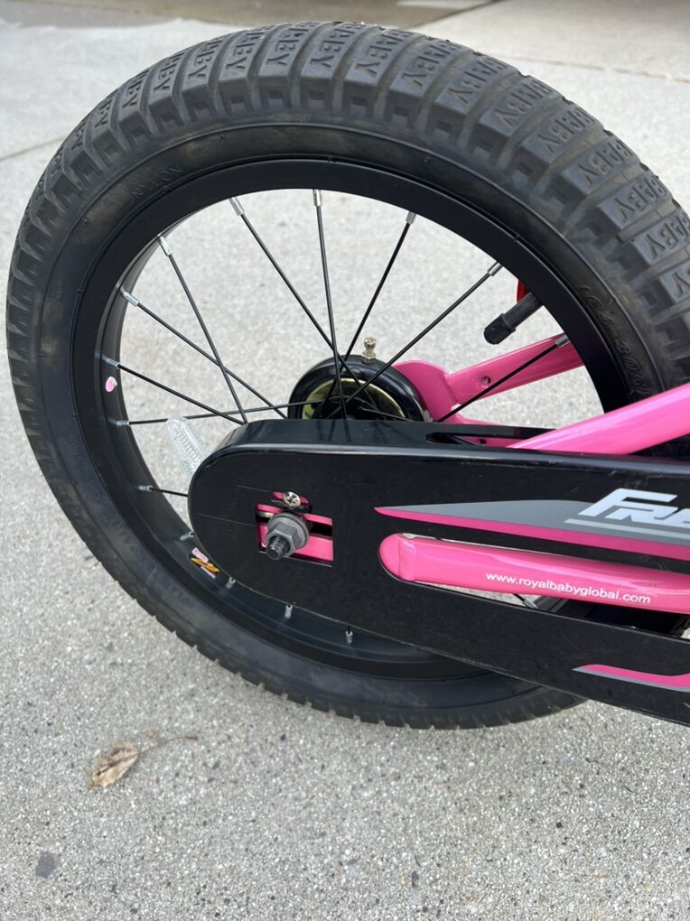 Royal Baby 16 inch wheels. My daughter has out grown this bike. Works great