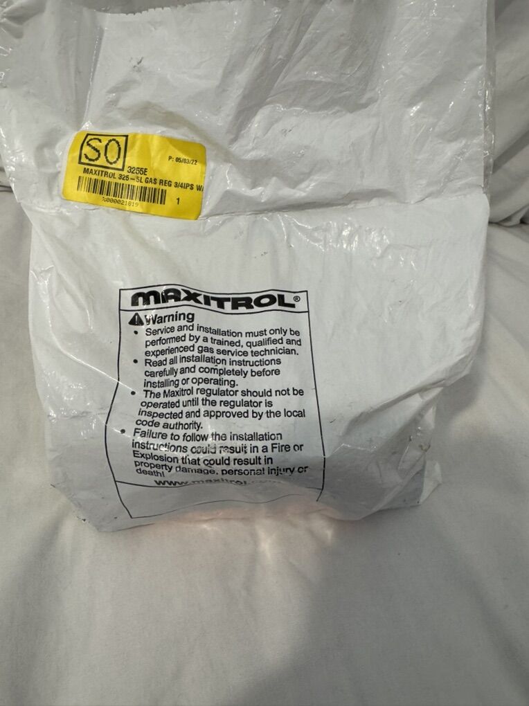 VenmoBrand-new Maxitrol 325-5L gas line pressure regulator, model 3255E. 3/4” IPS connections. Still sealed in the original Maxitrol factory packaging. Never installed.