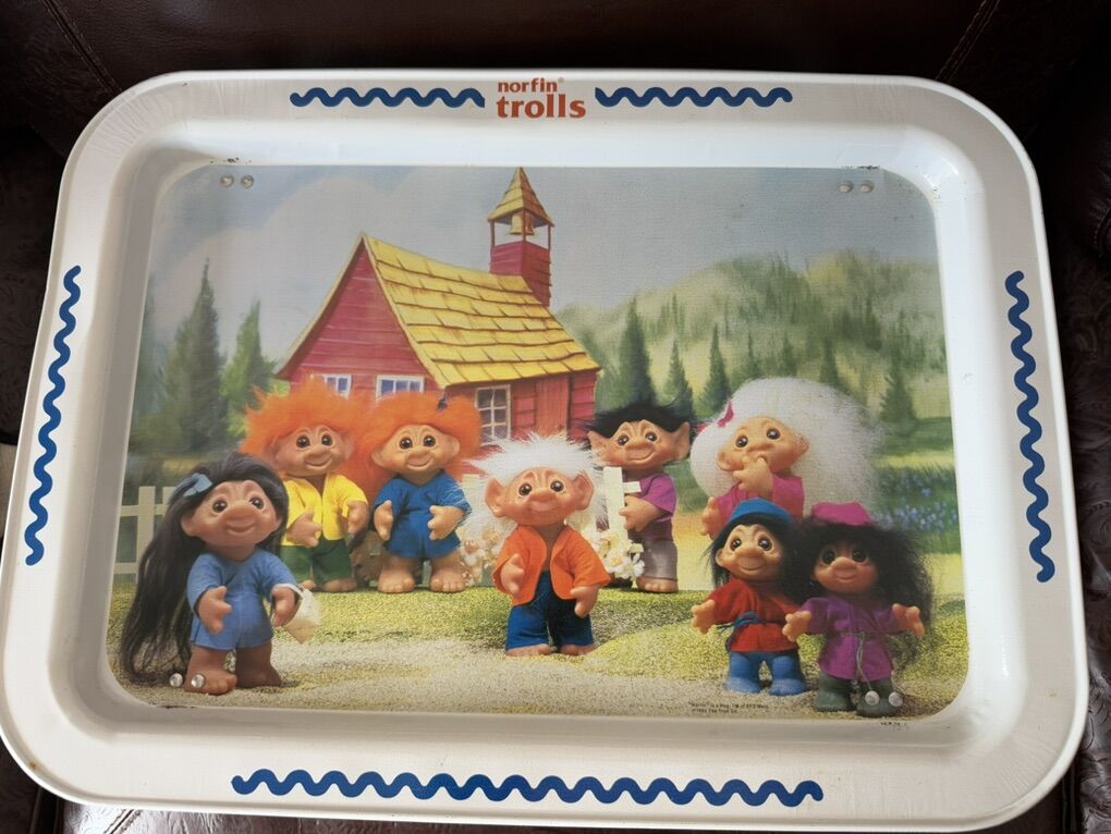 Vintage 1992 Norfin Trolls Metal TV Lap Rectangular Tray Collectors Piece