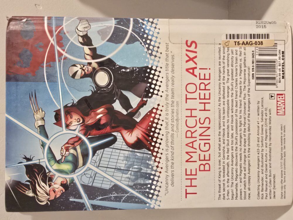 The product is a collection of hardcover comics titled "Marvel Comics The Uncanny Avengers by Rick Remender" comprising of volumes 1-5 from the year 2012. Written and illustrated by Rick Remender, these comics feature the adventures of the superhero team, The Uncanny Avengers. Published by Marvel Comics, the series falls under the genres of action, superheroes, and adventure, capturing the essence of US Comics tradition.
