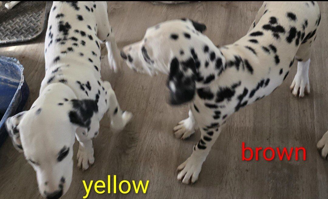 I have pups born 10-26-25 ready to go to their forever homes! yellow collar is lua and our longcoat male. others may be but havent tested. youngest pups have passed their baer screening! We still have some Dalmatians of different rare colors and a few longcoats all born in May 2025. also available are 2 Poodles born December 2024.