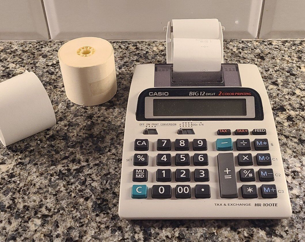 Please see the description in the pictures above. Calculator plus 2.5 rolls of paper.