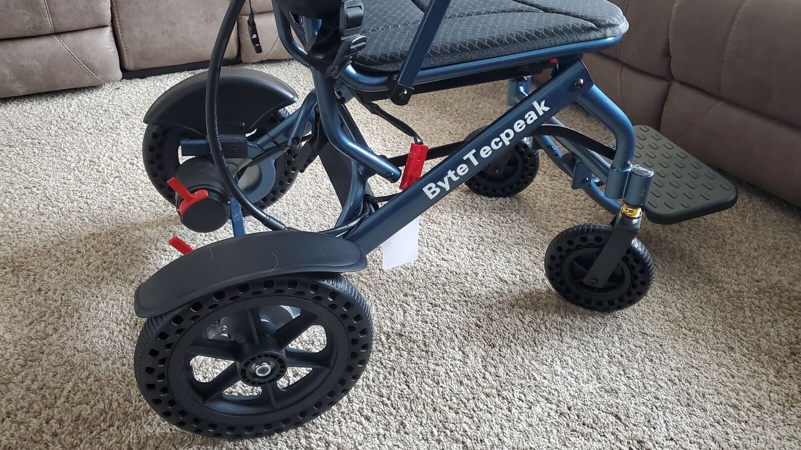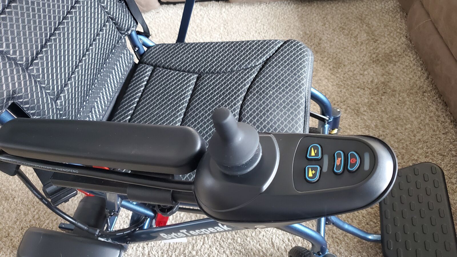 Lightweight and foldable electric wheelchair. Made from aluminum. Minimally used.