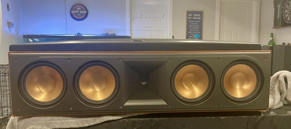 Klipsch RC-64 Center Channel Speaker (Original First-Gen) – Cherry – Mint Condition - For sale is the legendary Klipsch RC-64 (first-generation, not the later RC-64 II), finished in beautiful real cherry wood veneer. This is the highly sought-after original flagship center that many Klipsch enthusiasts still consider the best center the company ever made. Key Specs • Four 6.5” Cerametallic woofers + Tractrix horn-loaded titanium-dome compression driver • Frequency response: 57 Hz – 21 kHz (±3 dB) • Sensitivity: 98 dB @ 2.83V/1m (insanely efficient) • Power handling: 200 W continuous / 800 W peak • Nominal impedance: 8 ohms • Real wood cherry veneer cabinet (serial confirms genuine cherry finish) • Dimensions: ~8” H × 35.8” W × 13” D | Weight: ~60 lbs Condition: 9.8/10 – Absolutely pristine • No scratches, dents, chips, or sun fading on the cherry veneer • All four woofers and the horn driver are perfect – no rubs, tears, or dust • Grilles and badges are flawless • Comes with 8-gauge upgraded bi-wire jumpers installed (as shown) Why the original RC-64 is still king (forum consensus): • AVS Forum’s famous 2007–2012 Klipsch threads: “The original RC-64 is smoother and more natural than the RC-64 II – the II can be a bit bright in comparison.” • Many owners on Reddit r/hometheater and Polk Audio Forum still prefer the Gen 1 for its warmer, more musical midrange while retaining the classic Klipsch dynamics and insane output capability. • Frequently called “the best center channel Klipsch ever built” and a perfect match for RF-7, RF-83, or any Heritage setup. At $1k this is a steal – these rarely pop up in this condition and typically sell between $900–$1,300 when they do (especially cherry). New they were $1,500 fifteen years ago. Local pickup preferred [your area], but I can ship at buyer’s expense (it will be triple-boxed and fully insured). Happy to demo it for serious buyers. First one with cash (or Venmo/Zelle/PayPal) takes it home. PM for more photos or to come hear it sing! .