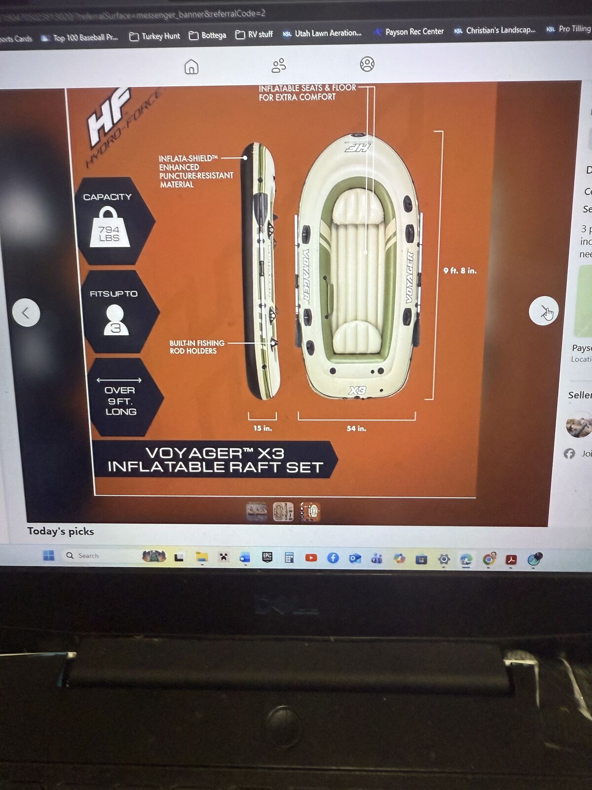 ZelleLike New (used once) Voyager X3 inflatable raft . Selling used out of the box raft for 2-3 people. Has rod holders also for fishing. Raft has built in rod holders. Comes with all the original items just not the box. Used once. Asking $75 obo. Has all items like paddle, pump, bag etc. Sells new for 130 on Amazon See details on Amazon link: https://www.amazon.com/Bestway-Hydro-Force-Voyager-Raft-Set/dp/B09X26JQRX/ref=sr_1_1?crid=3S34MQTOU6RXQ&dib=eyJ2IjoiMSJ9.mf7cmFR4KQgBkGpUQLmrSfVyBiHt_yzjy6Z8PEZ5Uk4nylSc_6givWcj06eJ0gRPtPwn7GLU9dKKDGdY4qmND_TNBwuoNi3QjKCWM2ioB7lP14ISplL8PEc29lFnP3fT1UWMTg3pNAN30PD27eZ_fqcis838RSthB1WrACAj15noVvEwUHaaoUCMCzjgBjzVA42ODw_Dz2uHlM3PAYX2d-F6ox_Oy1s3d__gw4Cu0uvFi6ifurhAw896oucX0kxivaApGSjs2B2v-3eLnwqSW2sZWC1sG7HQcxit7HwWdWA.x_GgOXC-wARzigLvxB3o6qFQAtDct6XYL0nMjnJJkjw&dib_tag=se&keywords=Voyager%2BX3%2Binflatable%2Braft&qid=1765342290&sprefix=voyager%2Bx3%2Binflatable%2Braft%2Caps%2C415&sr=8-1&th=1