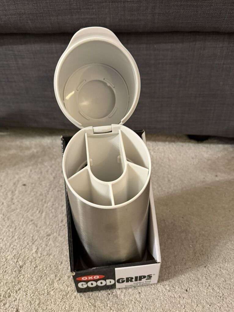VenmoLarge tooth brush holder. Silver. With a lid brand new.