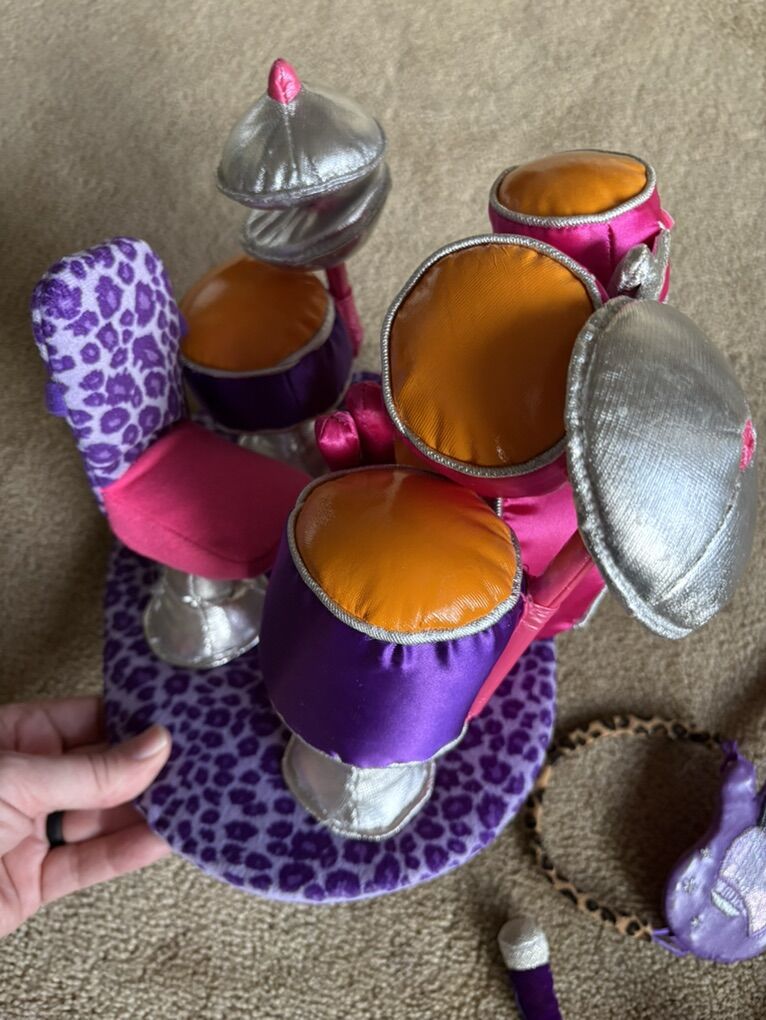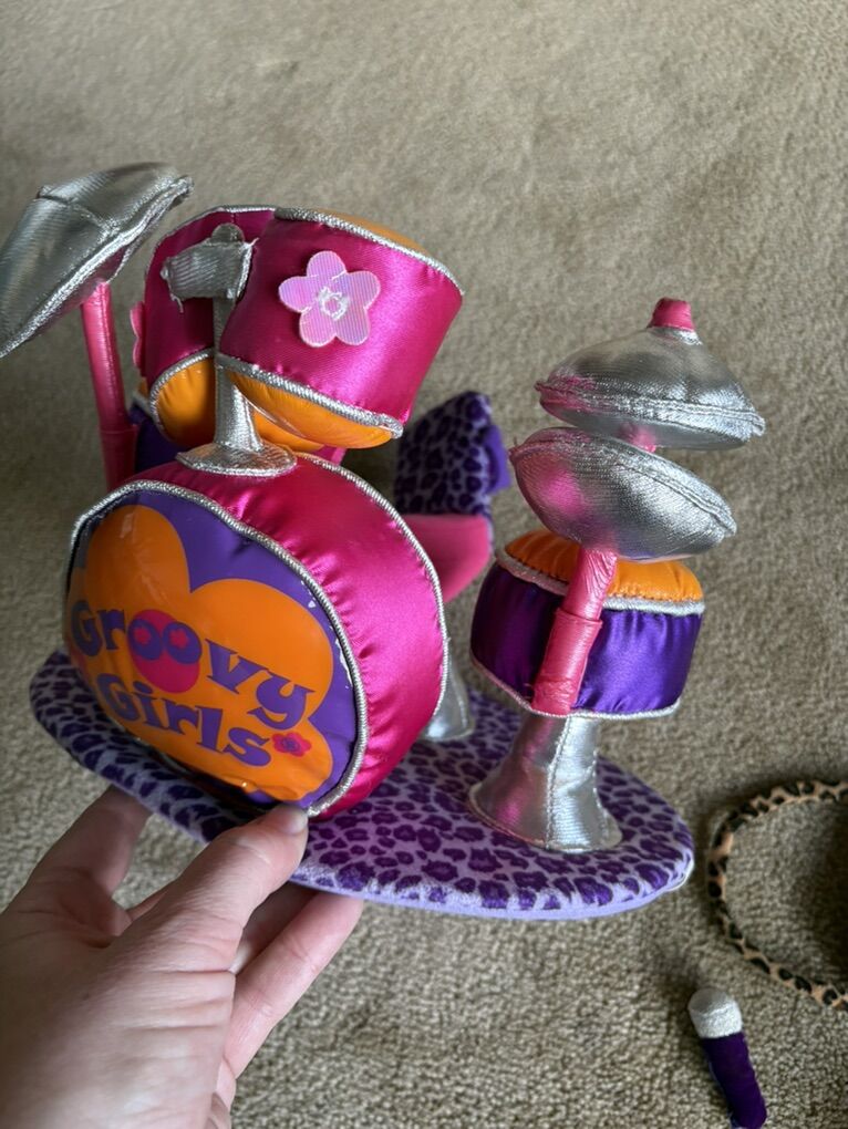Groovy Girls Drums and Guitar Set. Includes everything shown in photos: drum set, guitar, microphone. Sold as is, as a set only. Very good condition. Text only. Cash or Venmo.