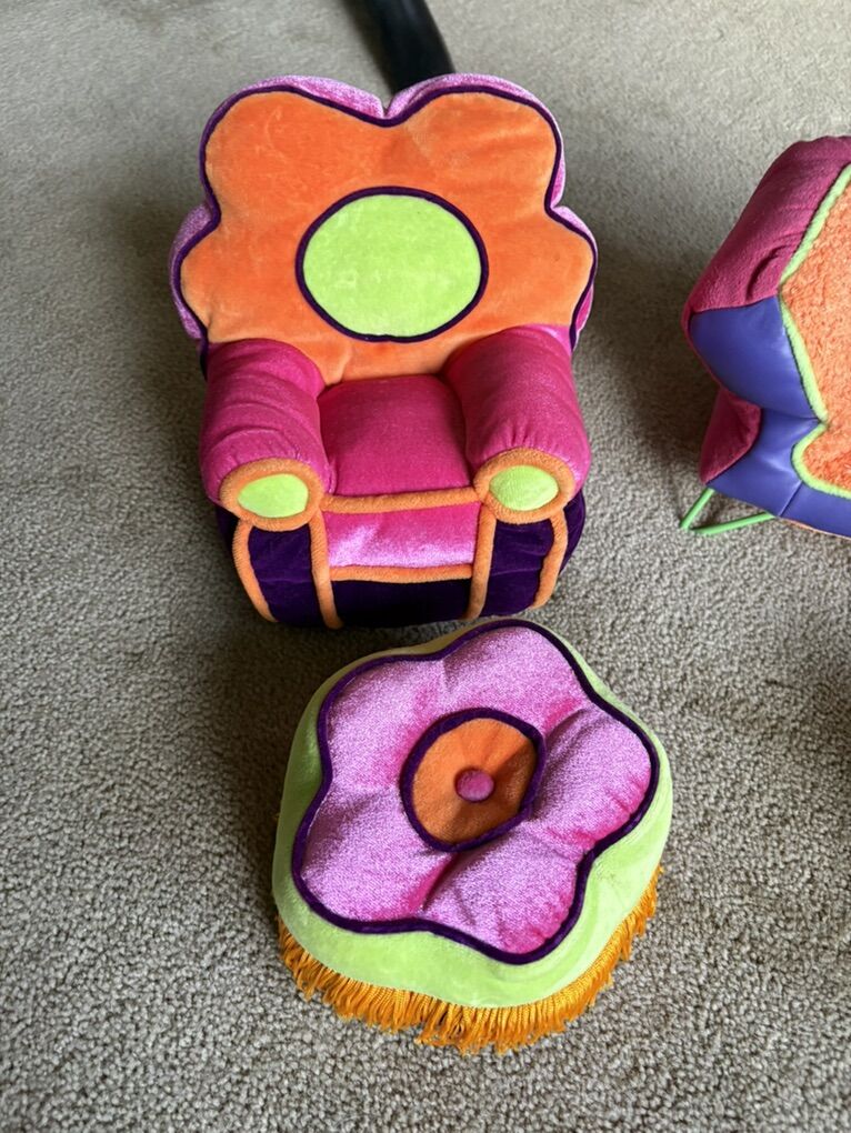 Groovy Girls Living Room Set. Includes everything shown in photos: couch, chairs, ottomans. Sold as is, as a set only. Very good condition. Text only. Cash or Venmo.