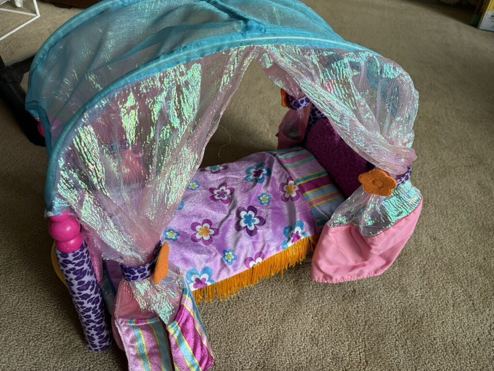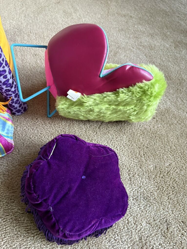 Groovy Girls Bedroom Set. Includes everything shown in photos: canopy bed, chair, ottoman. Sold as is, as a set only. Very good condition. Text only. Cash or Venmo.