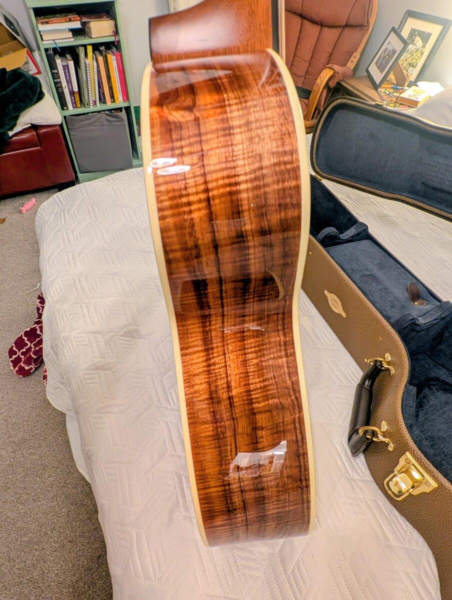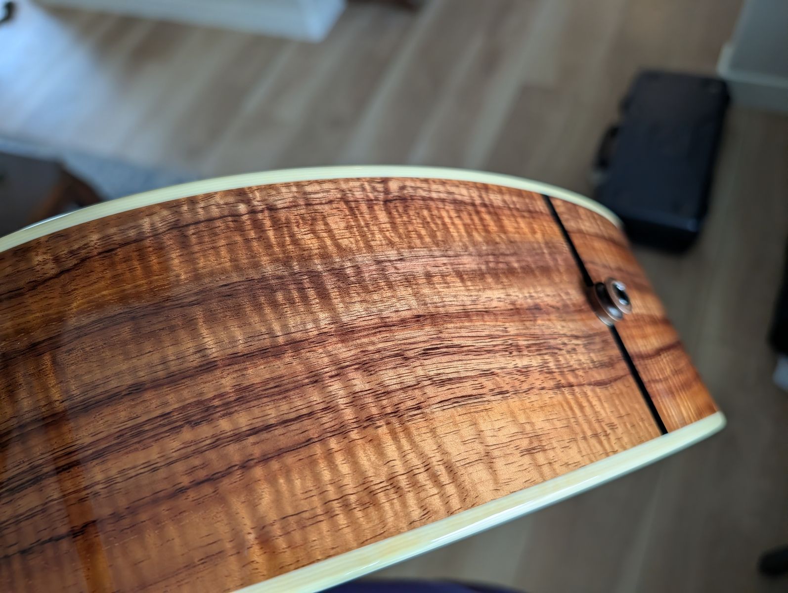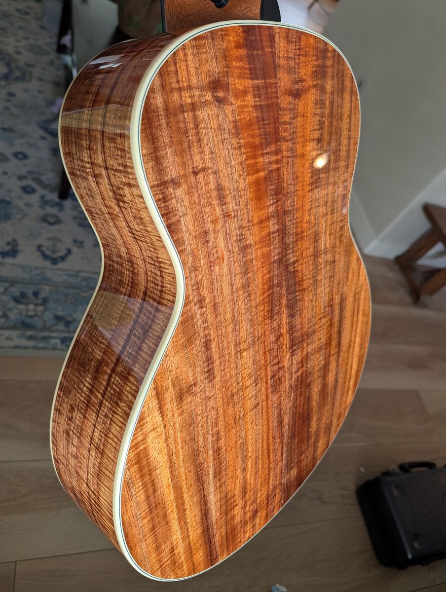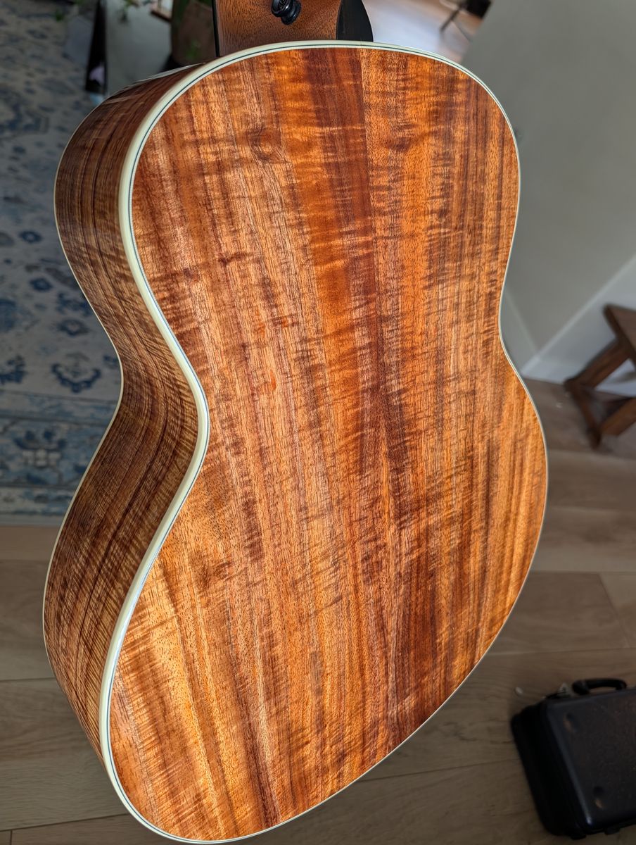 This Taylor Gold Label is absolutely amazing. I've owned a K24 in the past and played on some other very high-end Koa series, and this guitar has some absolutely amazing flame koa -- like the kind that someone might only see on a custom model costing well over $7k.
