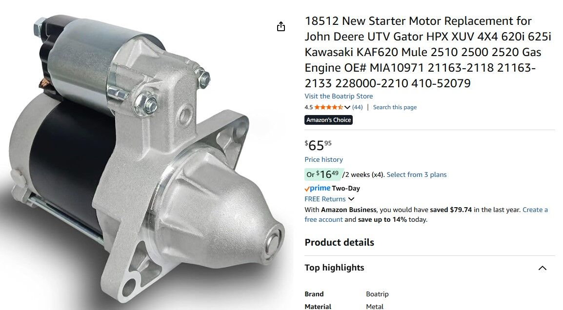 ApplePay18512 New Starter Motor Replacement for John Deere UTV Gator HPX XUV 4X4 620i 625i Kawasaki KAF620 Mule 2510 2500 2520 Gas Engine OE# MIA10971 21163-2118 21163-2133 228000-2210 410-52079