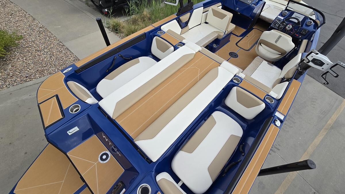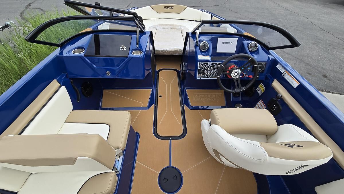 Options Include: -Blue Abyss Hull -Black Metal Flake Gel Accent Color -Mercury 6.2L HO 370hp Engine -Ivory Interior -Plug and Play Ballast Upgrade In Ski Locker -PTM Pro Combo Ski Mirror -PTM Swivel Board Racks -Center Trim Tab -Stainless Steel Upgrade -Bow Filler Cushion -Bow Block Off -Deluxe Travel Cover -Bimini Top -Mercury 7" Glass Dash /w Mercury Vessel View Link -Sound System Upgrade -Teak Deluxe Textured Flooring -LED Light Package -Dual Battery Upgrade -38pk Softside AO Heyday Cooler -Boatmate Tandem Axle Bunk Trailer w/Alloy Wheels -Spare Tire -High Altitude Package 2025 Heyday Wake Boats WTSURF BIGGER, BADDER FOR FEARLESS RIDERS The new WTSurf offers a sleek profile, spacious layout, and more ballast than ever before. A full windshield and deep gunnels offer great protection from the elements and double-stitched upholstery keeps passengers comfortable. This model is built for socializing with removable backrests, flexible seating and ample space for gathering in the bow, cockpit, and stern. Between the stern’s ‘hot tub’ seats, a walkthrough provides easy access to the swim platform. Features may include: Cockpit 12V Navigation Lights 500 GPH Bilge Pump (automatic) Bow & Transom Eyes (3) Cupholders (18) Fiberglass Floor Liner Fuel Fill w/ Integrated Vent GatorStep® Textured Flooring Glove Box Head Unit w/ 4x Speakers Helm Seat w/ 180 Degree Swivel In-Floor Ski/Wakeboard Storage LED Courtesy Lights Engine 12V Engine Compartment Blower Mercury 6.2L 370 HP Helm 12V Accessory Outlet 12V Horn Convex Ski Mirror Custom Sport Steering Wheel Multi-Function Gauges w/ Fog Resistant Glass Lenses: Fuel, Speedometer, Tachometer, Voltmeter Safety Lanyard Side-Mounted Engine Shifter/Throttle Standard Speed Control Tilt SteeringWheel Trailer The Double Up: Tandem Axle Painted Trailer w/ Brakes & Steel Wheels Water Sports Force Tower, Black Quick-Detach Swim Platform (Removable for Storage) Stainless Steel Transom Tow Ring