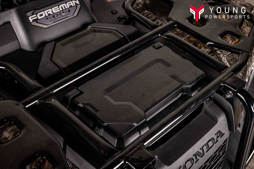 2026 Honda® FourTrax Foreman 4x4 EPS TrueTimber® Atera CamoTackle every job. Conquer every trail.Built for hard work and ready for adventure, the FourTrax Foreman 4x4 delivers rugged performance with its powerful 518cc engine and long-travel suspension. Whether handling tough jobs or exploring epic trails, this ATV is your go-to machine for reliability, durability, and all-day capability.Features may include:PerformancePowerful 518cc engineExperience unwavering performance with our robust liquid-cooled 518cc engine, which delivers the power you need off-road and on the job.HandlingTraxLok®Unlock superior traction optimization with our TraxLok® system, which offers three modes: 2WD, 4WD, and 4WD with a locking front differential and Speed Override. This system is designed to enhance speed in challenging conditions, such as mud and snow.EngineeringLongitudinal engine layoutBy orienting the crankshaft front-to-back in the chassis, we route the flow of power straight to the wheels without any unnecessary right-angle detours, reducing powertrain friction and putting more grunt to the ground.StyleStylingThese ATVs feature durable bodywork designed to resist scrapes and dings. The design showcases sharp lines, striking graphics, and vibrant color choices that make a strong statement.Comfort & ConvenienceFront/rear cargo racksDiscover unmatched versatility with our durable steel racks. Equipped with our Pro-Connect system, they enable easy attachment and removal of cargo boxes and accessories, enhancing functionality.TechnologyDigital display with Maintenance MinderThe digital display includes a Maintenance Minder system that displays when it’s time for service. Other functions include trip and hour meters, a gear position indicator, and much more.