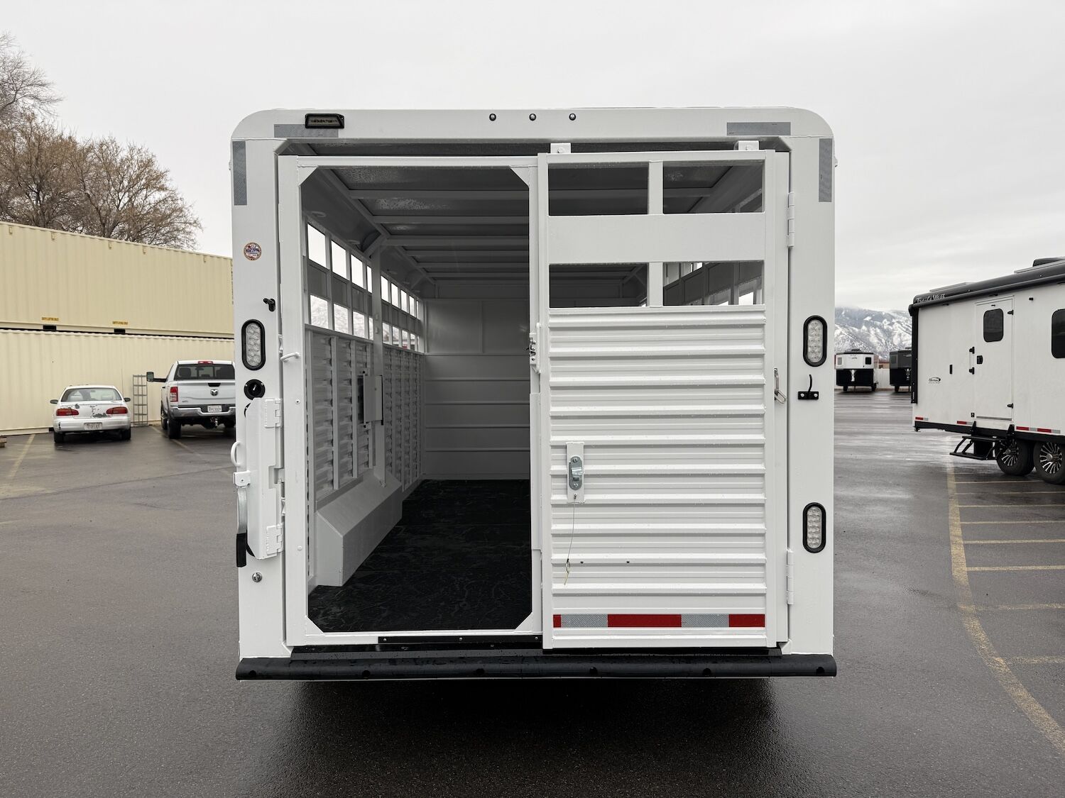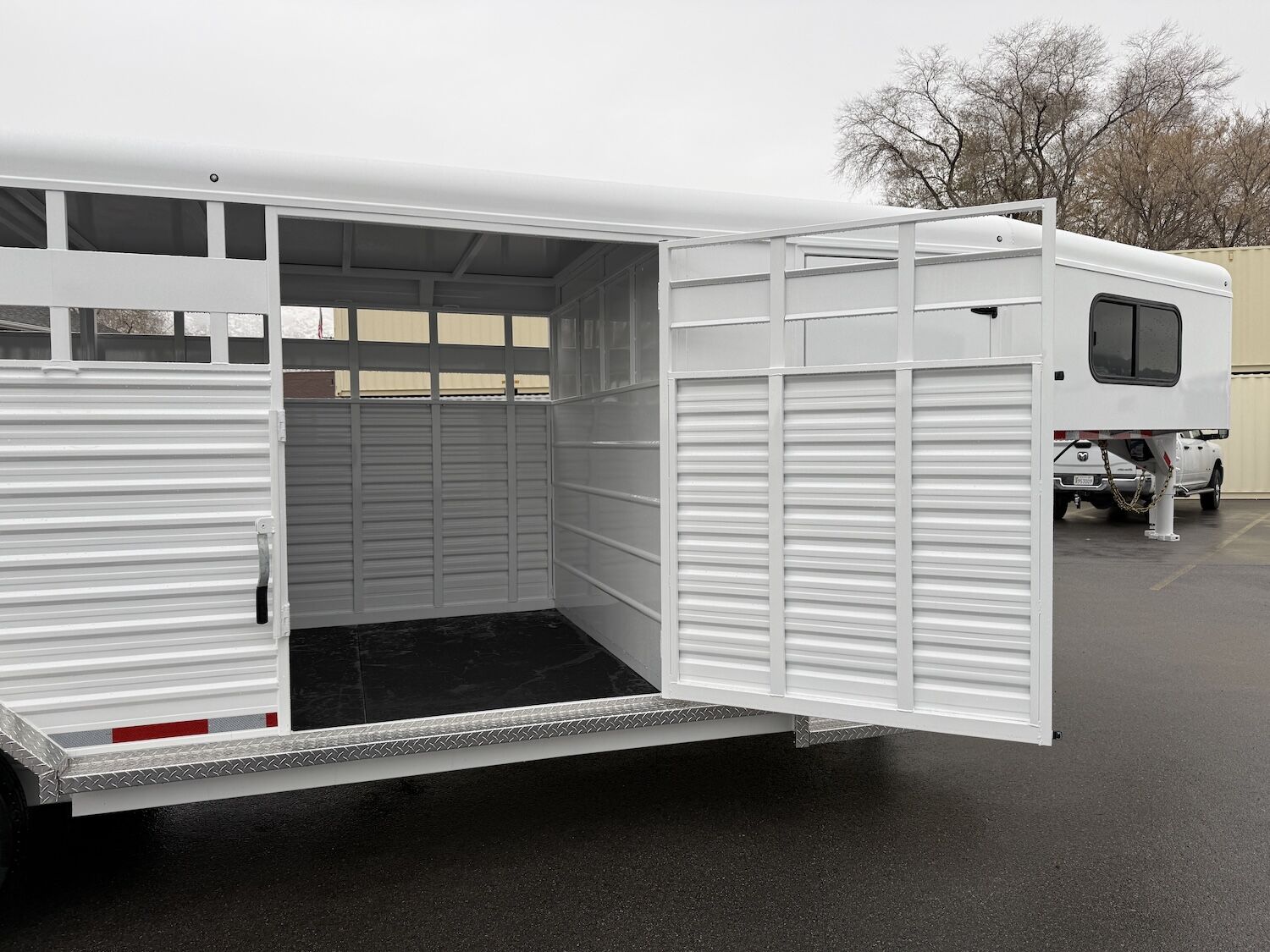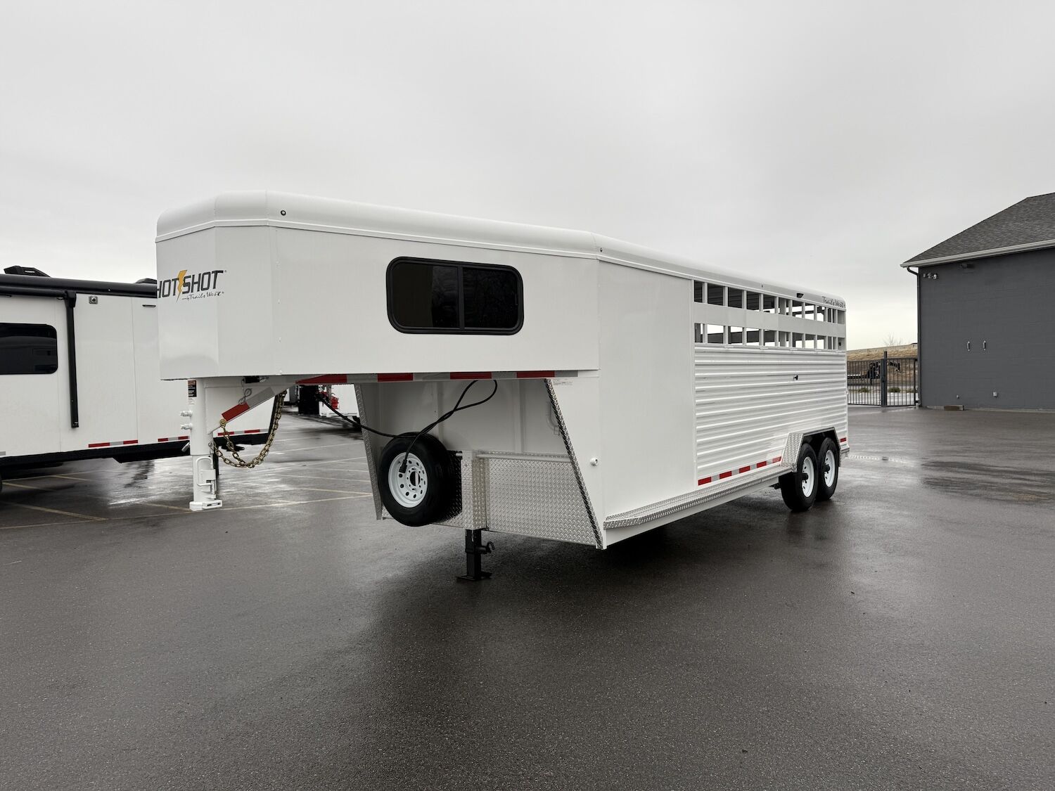 The Trails West Hot Shot gooseneck trailer is a 7’6″ wide x 7’ tall livestock trailer. The design of this trailer has electro-galvanized seamless corrugated steel sides for strength and durability. This extra-safe stock trailer is light weight and built for safety. This is a great pulling trailer because of the aerodynamic design of the front, cutting the wind while still providing enough space in the gooseneck area for an optional tack package. Check out this great priced trailer that is built for real stock men and women.