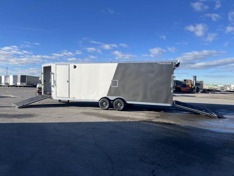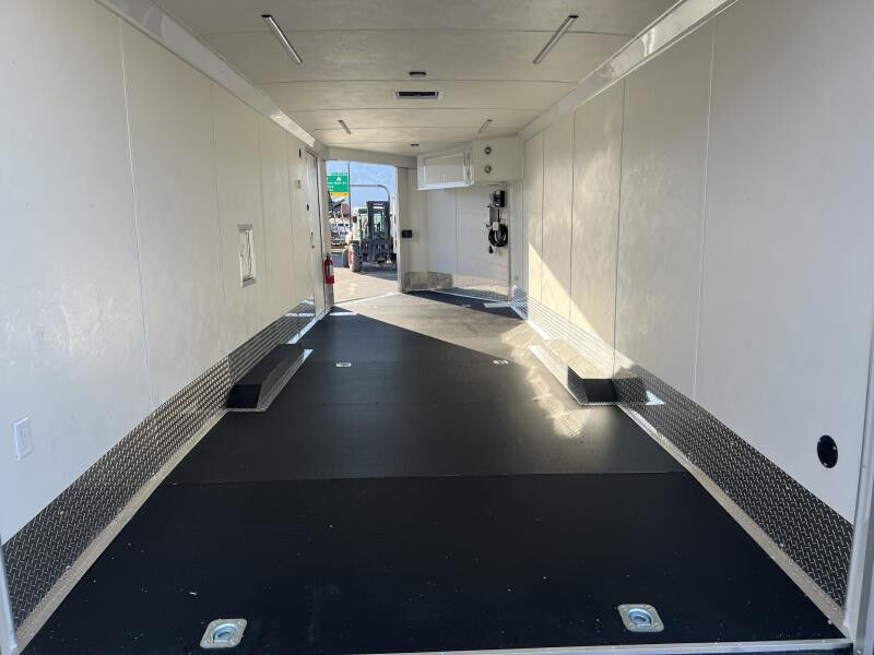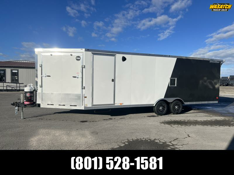 Stock #: WC1573 Trailer Specs: Color: White/Silver .030 Bonded Aluminum Interior/Bed: Length: 22' Box + 6' V-Nose Width: 8' Height: 7'0" Door/Ramp: Rear Spring Assist Ramp Door (Width: 92" x Height: 80") Door/Ramp: Front Spring Assist Ramp Door (Width: 76" x Height: 64") Weight: 4,530 lbs. | GVWR: 9,990 lbs. | Payload: 5,460 lbs. Axle(s): (2) 5,200 lb. Dexter Spring Electric Axle w/ EZ Lube Hubs Tire/Wheel: ST225/75R15 | Load Range D Coupler: Type: Bumper Pull | Size 2-5-16" | 7-Way 12V Connector 16" OC Vertical Posts | 16" OC Crossmembers | 16" OC Tube Roof Bows 3 Year Limited Warranty Trailer Includes Following Options: Black Polybead Flooring White Wall & Ceiling Liner Insulated Walls & Ceiling Forced Air Propane Heater Rear Spoiler w/ Load Lights Standard Features: 2"x6" Tube Main Frame 1-Piece Aluminum Roof 24" Starbright Stoneguard White Luan Sidewall & Ceiling Liner 3/4" PlexCore Flooring w/ Polybead Flooring 36" Side Entry Door w/ Flush Lock and Recessed Step (6) 5,000# Recessed D-Rings 16" Ramp Extension Insulated Walls and Ceiling Flow-Thru Sidewall Vents 14x14 Fuel Door 14x14 Crank Up Roof Vent 12v Interior LED Dome Light 12v Exterior LED Lighting Smooth Aluminum Radius Fenders Undercoated Chassis Common Addons: Wall Mounted Spare Tire 10 ft. E-Track Stick Recessed 2,500# D-Ring Additional Colors Available Call for Availability WASATCH TRAILER SALES - LARGEST TRAILER SELECTION IN UTAH Springville: (801) 528-1581 | 1180 S 2000 W, Springville UT, 84663 View More Inventory: www.wasatchtrailer.com