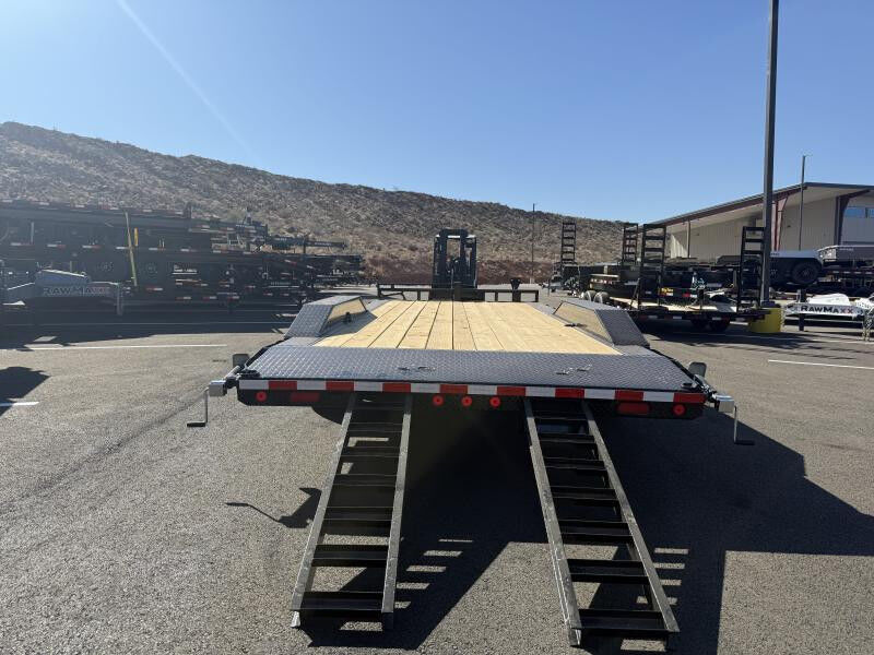 Stock #: PJ0095 Trailer Specs: 2 - 7,000# Electric Axle 5/16" Grade 70 Safety Chain w/Clevis hook (2 each) 2' Dovetail w/5' Rear Slide-In Ramps Front Toolbox Spare Tire Spring Loaded Drop Leg Jack (10,000 lb.) 6-Leaf Slipper Spring Suspension 16" Black Spoke Wheels ST235/80R16 Radial Tires (3,520 lbs.) 3-5/8" x 1-1/2" (ID) Stake Pockets 10" X 93" Drive-over 1/4" Diamond Plate Steel Fenders 6" Channel Tongue 3" Channel Crossmembers on 16" Centers 2" Treated Pine Lumber Deck 102" Wide Deck All-Weather Wiring Harness (7-way RV) Powdercoat WASATCH TRAILER SALES - LARGEST TRAILER SELECTION IN UTAH Hurricane: (435) 239-8920 | 6477 W Foothills Canyon Dr. Hurricane, UT 84737 View More Inventory: www.wasatchtrailer.com Over 2,000 trailers in stock at Wasatch Trailer Sales! With three convenient Utah locations - Layton, Springville, and Hurricane - finding the perfect trailer has never been easier. We offer one of the largest inventories around, backed by quality you can trust, superior value, and unparalleled pricing. Don't see exactly what you need? Call or text 435-239-8920 with 20+ top manufacturers and easy financing, we'll get you on the road fast! Whatever you haul, we've got the right trailer - in stock year-round!