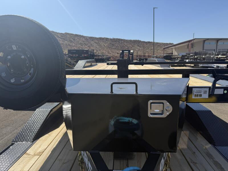 Stock #: PJ0089 Trailer Specs: 2 - 7,000# Electric Axle 5/16" Grade 70 Safety Chain w/Clevis hook (2 each) 2' Dovetail w/5' Rear Slide-In Ramps Front Toolbox Spare Tire Spring Loaded Drop Leg Jack (10,000 lb.) 6-Leaf Slipper Spring Suspension 16" Black Spoke Wheels ST235/80R16 Radial Tires (3,520 lbs.) 3-5/8" x 1-1/2" (ID) Stake Pockets 10" X 93" Drive-over 1/4" Diamond Plate Steel Fenders 6" Channel Tongue 3" Channel Crossmembers on 16" Centers 2" Treated Pine Lumber Deck 102" Wide Deck All-Weather Wiring Harness (7-way RV) Powdercoat WASATCH TRAILER SALES - LARGEST TRAILER SELECTION IN UTAH Hurricane: (435) 239-8920 | 6477 W Foothills Canyon Dr. Hurricane, UT 84737 View More Inventory: www.wasatchtrailer.com Over 2,000 trailers in stock at Wasatch Trailer Sales! With three convenient Utah locations - Layton, Springville, and Hurricane - finding the perfect trailer has never been easier. We offer one of the largest inventories around, backed by quality you can trust, superior value, and unparalleled pricing. Don't see exactly what you need? Call or text 435-239-8920 with 20+ top manufacturers and easy financing, we'll get you on the road fast! Whatever you haul, we've got the right trailer - in stock year-round!